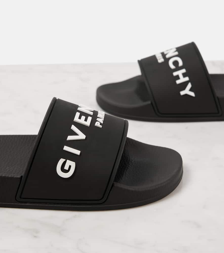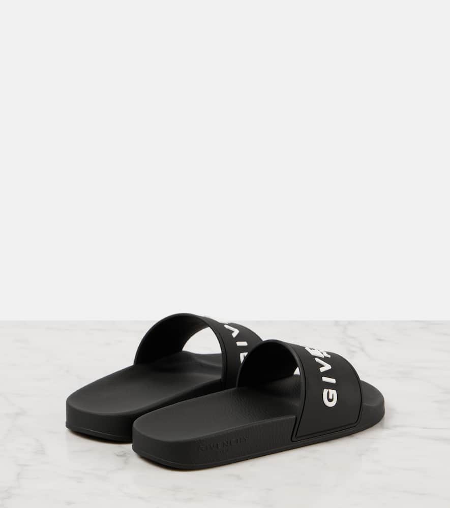 Upper: polyurethane. Lining: polyurethane. Sole: rubber insole and sole. Toe shape: round open toe. Made in Italy. Includes: shoe box. Designer color name: Black. Shop the latest Givenchy Slides for women now.