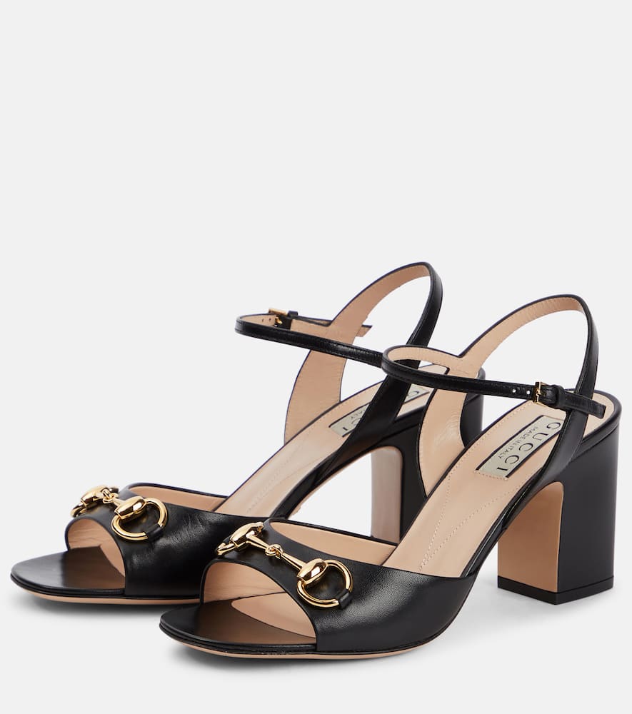 Upper: leather. Lining: leather. Sole: leather insole and sole. Toe shape: round open toe. Made in Italy. Includes: dust bags, shoe box. Designer color name: Nero. Closure: buckle fastening. Hardware color: gold. Shop the latest Gucci High-Heel Sandals for women now.