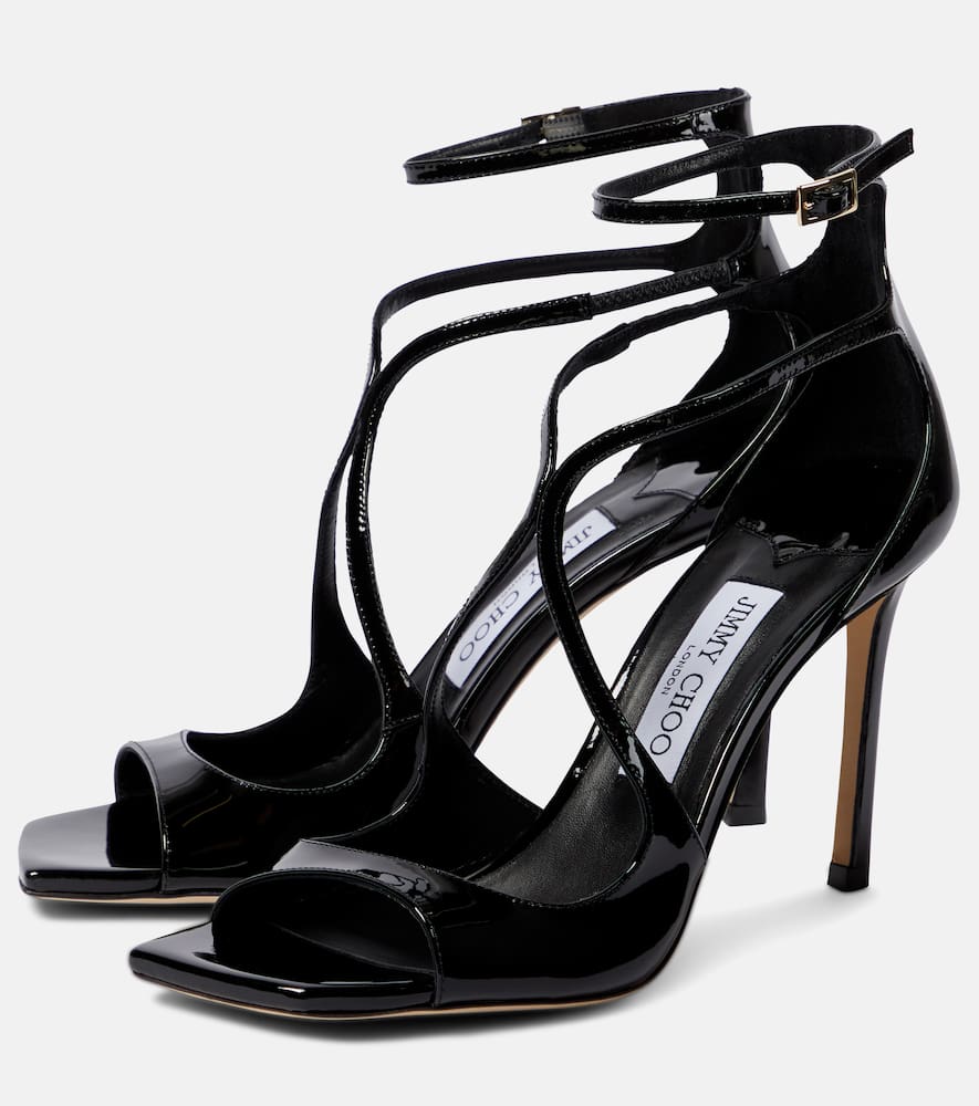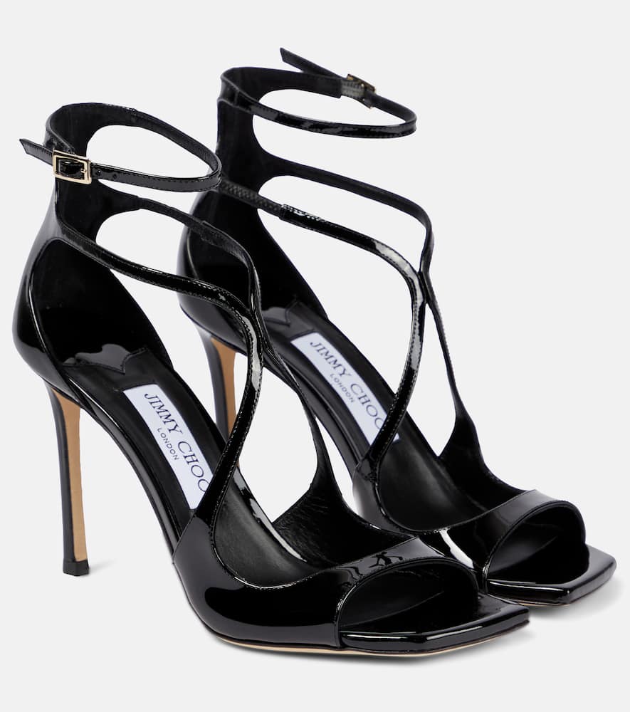 Upper: cow leather. Lining: leather. Sole: leather insole and sole. Toe shape: square open toe. Made in Italy. Includes: shoe box. Designer color name: Black. Closure: buckle-fastening ankle strap. Hardware color: black. Shop the latest Jimmy Choo High-Heel Sandals for women now.