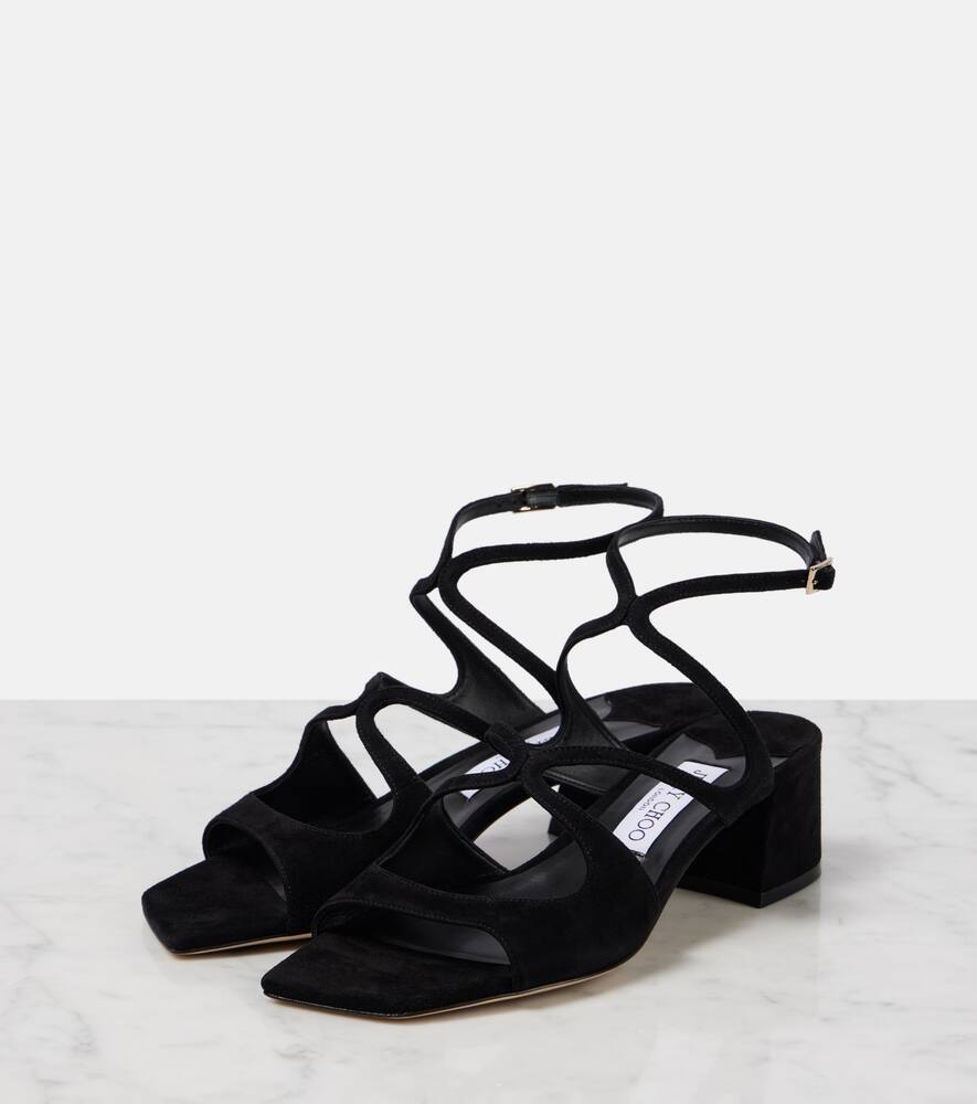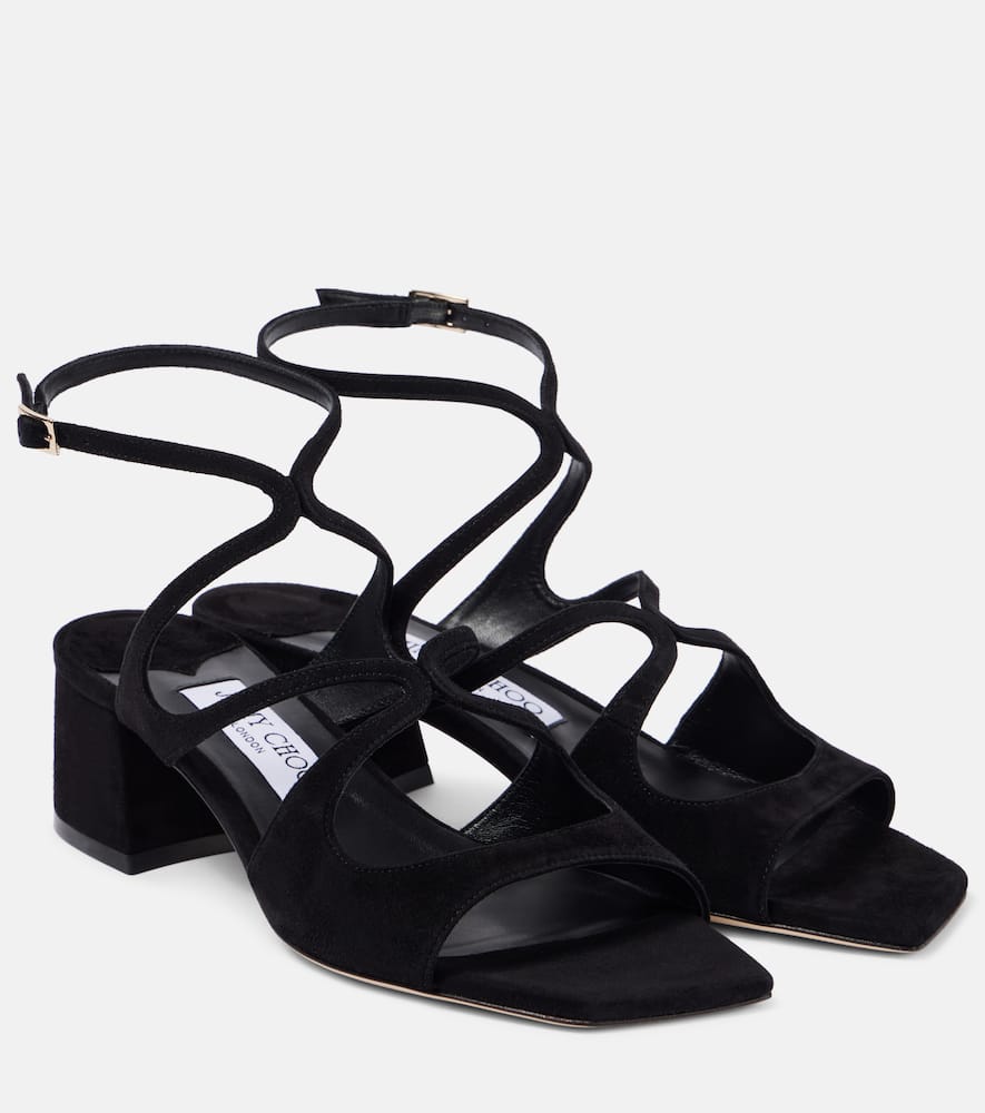 Upper: leather. Lining: leather. Sole: leather insole and sole. Toe shape: square open toe. Made in Italy. Includes: shoe box, dust bags. Designer color name: Black. Closure: buckle-fastening ankle strap. Hardware color: silver. Shop the latest Jimmy Choo Mid-Heel Sandals for women now.