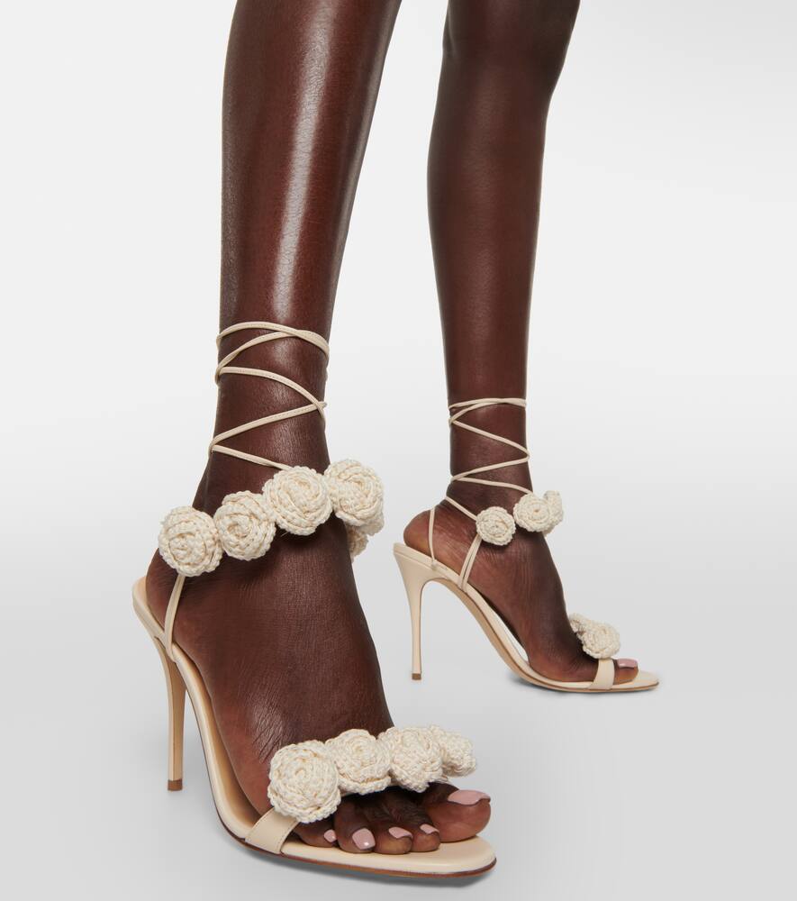 Toe shape: round open toe. Upper: fabric, leather. Sole: leather insole and sole. Closure: ankle strap. Designer color name: Cream. Comes with a box. Made in Italy. Comes with dust bags. Shop the latest Magda Butrym High-Heel Sandals for women now.