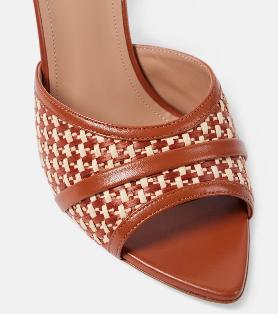 Upper: fabric. Lining: leather. Sole: leather insole and sole. Toe shape: pointed open toe. Made in Italy. Includes: dust bags, extra heel tips, shoe box. Designer color name: Tan/Tan. Shop the latest Malone Souliers High-Heel Sandals for women now.