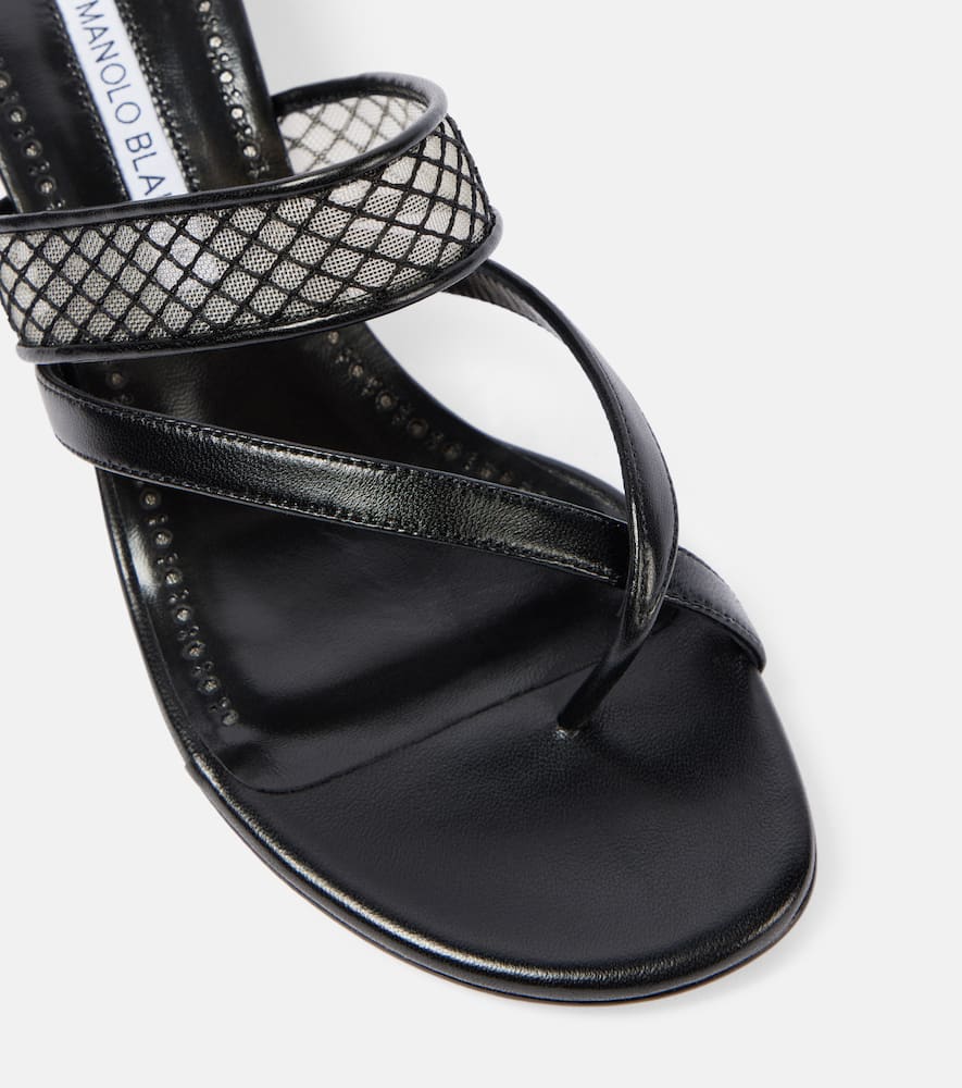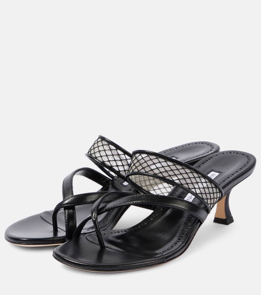 Upper: leather. Lining: leather. Sole: leather insole and sole. Toe shape: almond toe. Made in Italy. Includes: shoe box. Designer color name: 0015 Blck. Shop the latest Manolo Blahnik Mid-Heel Sandals for women now.