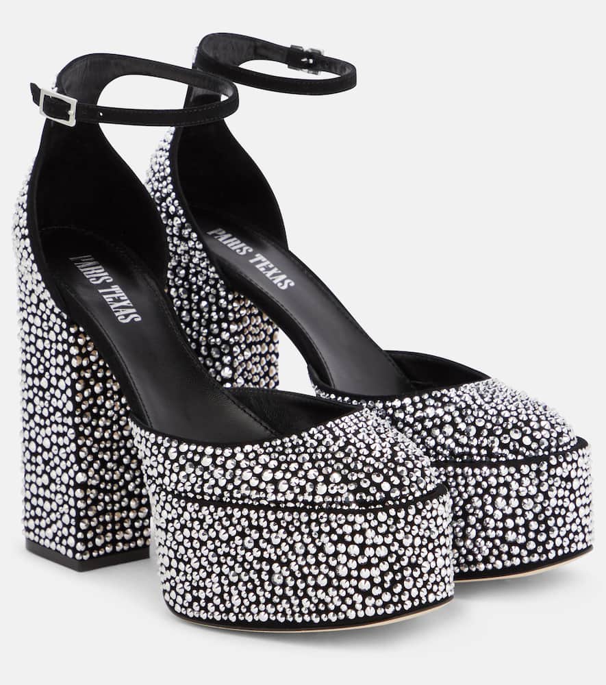 Lining: leather. Toe shape: round toe. Sole: leather insole and sole. Upper: leather. Comes with a box. Designer color name: Black Metal Diamond. Closure: buckle-fastening ankle strap. Made in Italy. Comes with dust bag. Shop the latest Paris Texas High-Heel Pumps for women now.