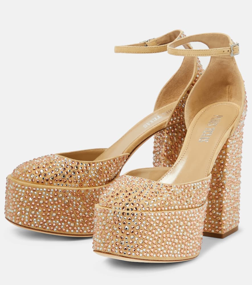 Lining: leather. Toe shape: round toe. Sole: leather insole and sole. Upper: leather. Comes with a box. Designer color name: Champagne Mix Crystal. Closure: buckle-fastening ankle strap. Made in Italy. Comes with dust bag. Shop the latest Paris Texas High-Heel Pumps for women now.