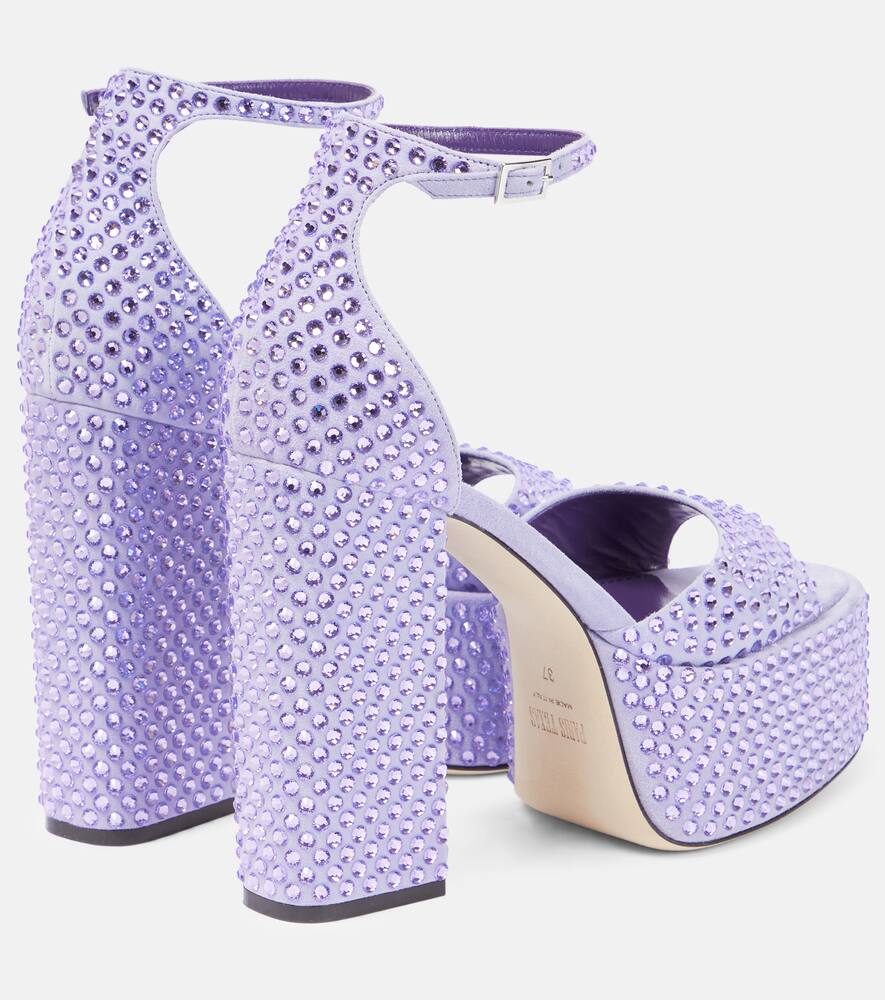 Trim: crystals. Toe shape: round open toe. Lining: leather. Sole: leather insole, leather and rubber sole. Made in Italy. Designer color name: Light Amethyst. Comes with dust bags. Upper: fabric. Closure: buckle fastening. Comes with a box. Shop the latest Paris Texas High-Heel Sandals for women now.