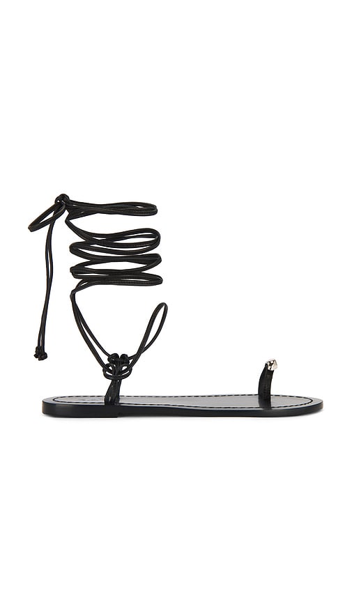 Leather upper with manmade sole. Ankle wrap tie closure. Leather lining. Toe loop with silver-tone hardware. Strappy design. RAYE-WZ2899. RYSH10038 U25. Inspired by the word Reina, the Spanish word for queen, Raye is the queen bee shoe brand that will surely capture your heart. With an extensive assortment of silhouettes from heels to boots and sandals to flats, Raye has that perfect something for everyone. Color: Black. Shop Black Black Sandals for women and the latest RAYE shoes now.