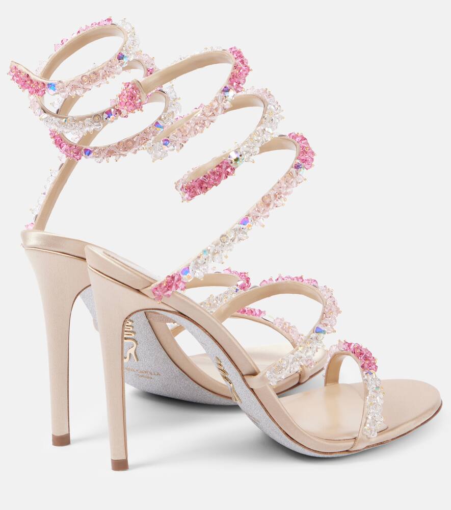 Upper: fabric. Lining: leather. Sole: leather insole and sole. Toe shape: round open toe. Made in Italy. Includes: shoe box, dust bag, extra heel tips. Designer color name: Beige/Pink Pearls. Shop the latest Rene Caovilla High-Heel Sandals for women now.