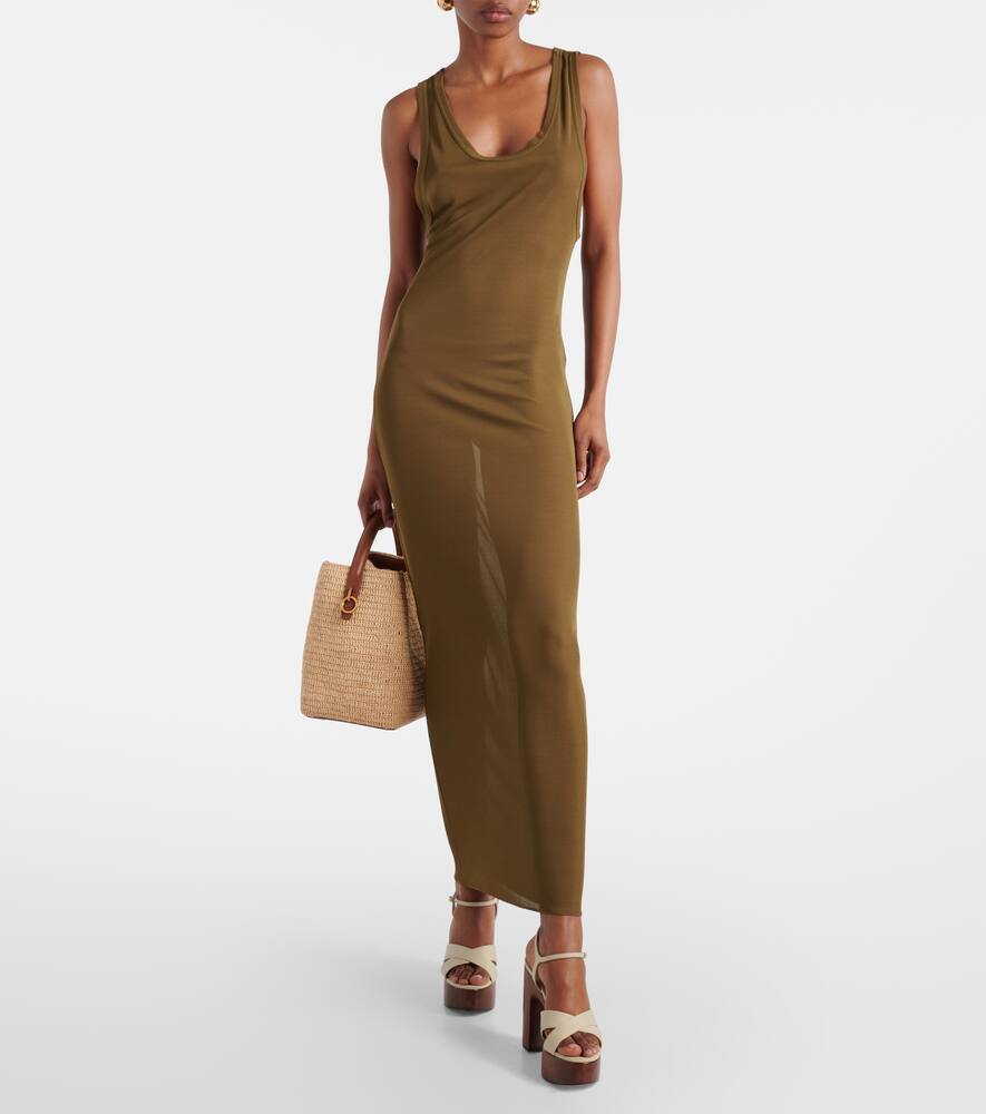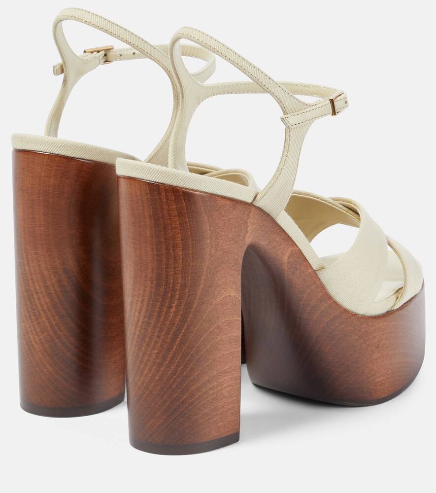 Upper: fabric. Lining: leather. Sole: leather insole, rubber sole. Toe shape: round open toe. Made in Italy. Includes: shoe box, dust bag. Designer color name: Beige. Closure: buckle fastening. Trim: wood. Hardware color: gold. Shop the latest Saint Laurent High-Heel Sandals for women now.