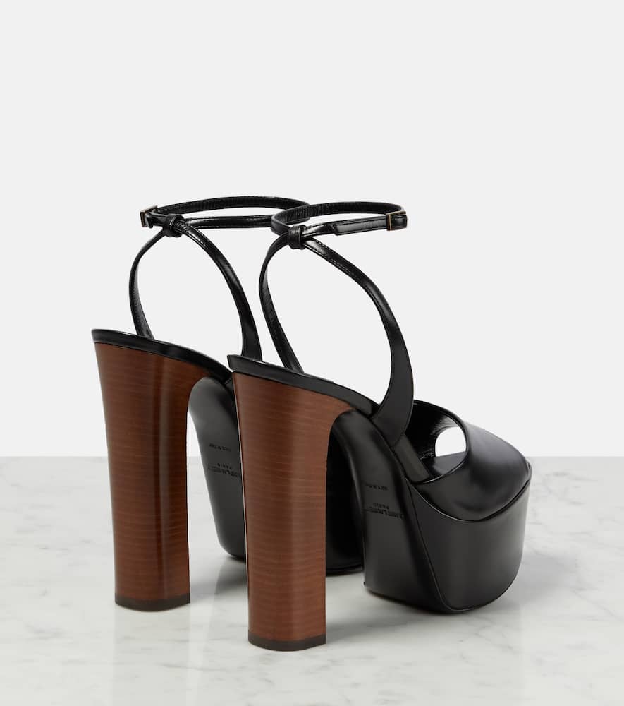 Upper: leather. Lining: leather. Sole: leather insole and sole. Toe shape: round open toe. Made in Italy. Includes: shoe box. Designer color name: Noir. Closure: ankle strap. Hardware color: gold. Shop the latest Saint Laurent High-Heel Sandals for women now.