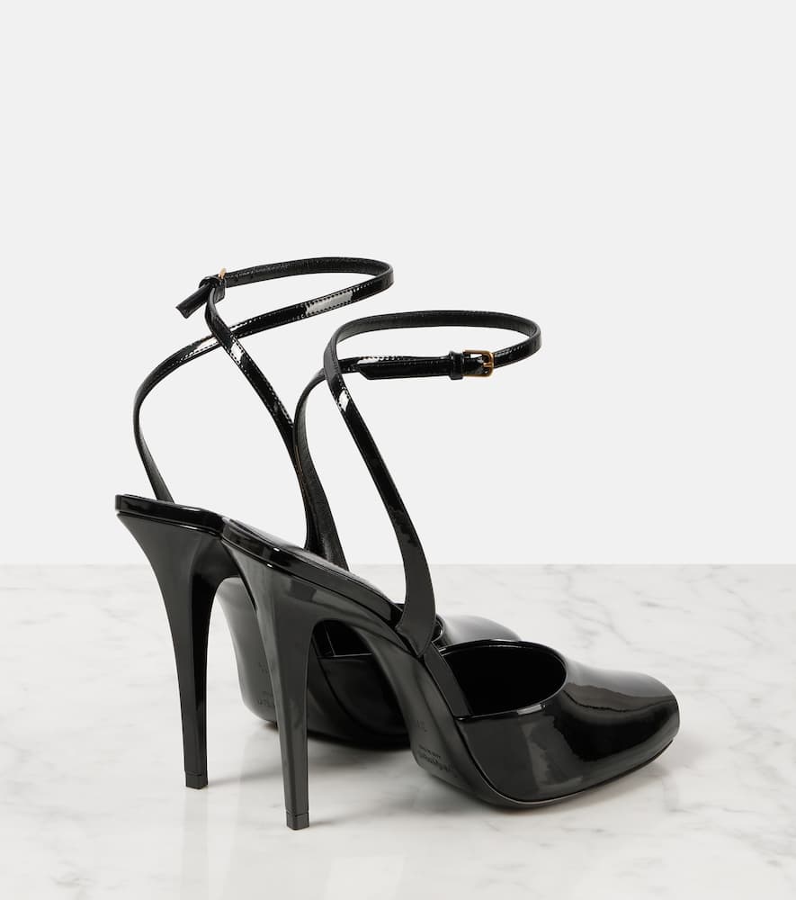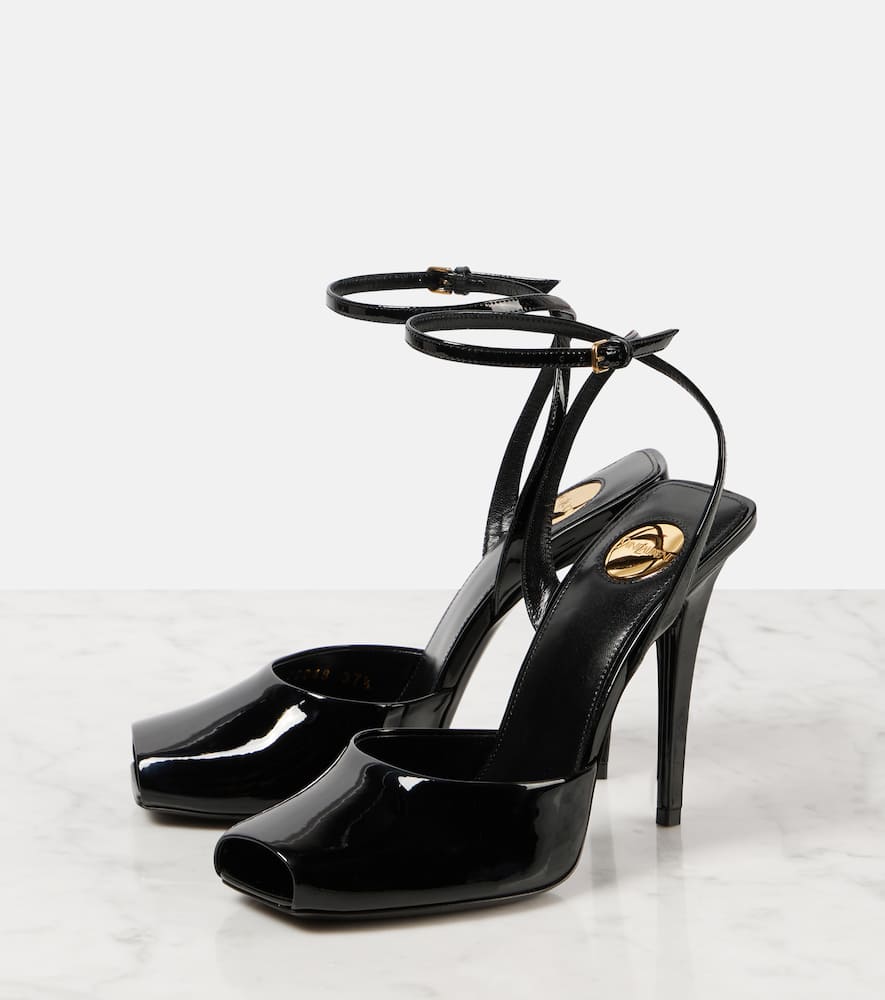 Upper: leather. Lining: leather. Sole: leather insole and sole. Toe shape: square open toe. Made in Italy. Includes: shoe box, dust bag. Designer color name: Nero. Closure: buckle-fastening ankle strap. Hardware color: gold. Shop the latest Saint Laurent High-Heel Sandals for women now.