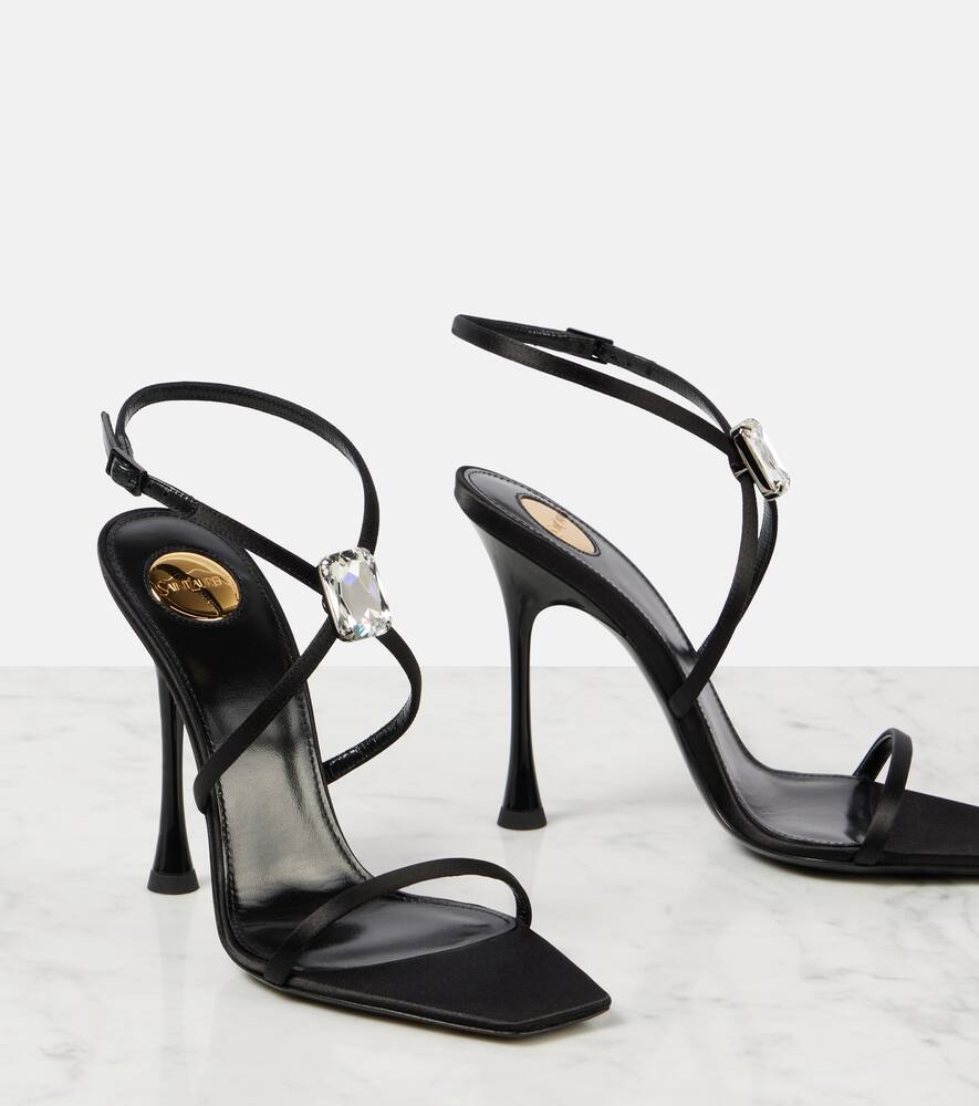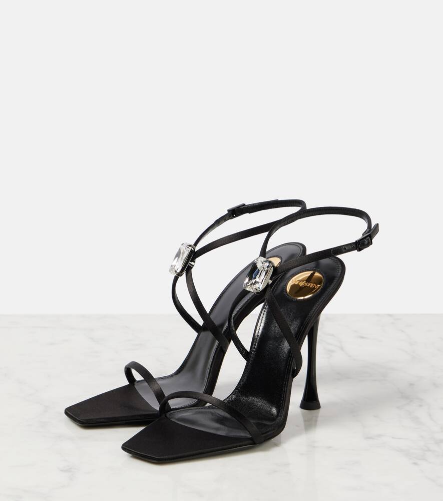Upper: fabric. Lining: leather. Sole: leather insole and sole. Toe shape: square open toe. Made in Italy. Includes: shoe box, dust bags. Designer color name: Noir. Closure: buckle-fastening ankle strap. Shop the latest Saint Laurent High-Heel Sandals for women now.