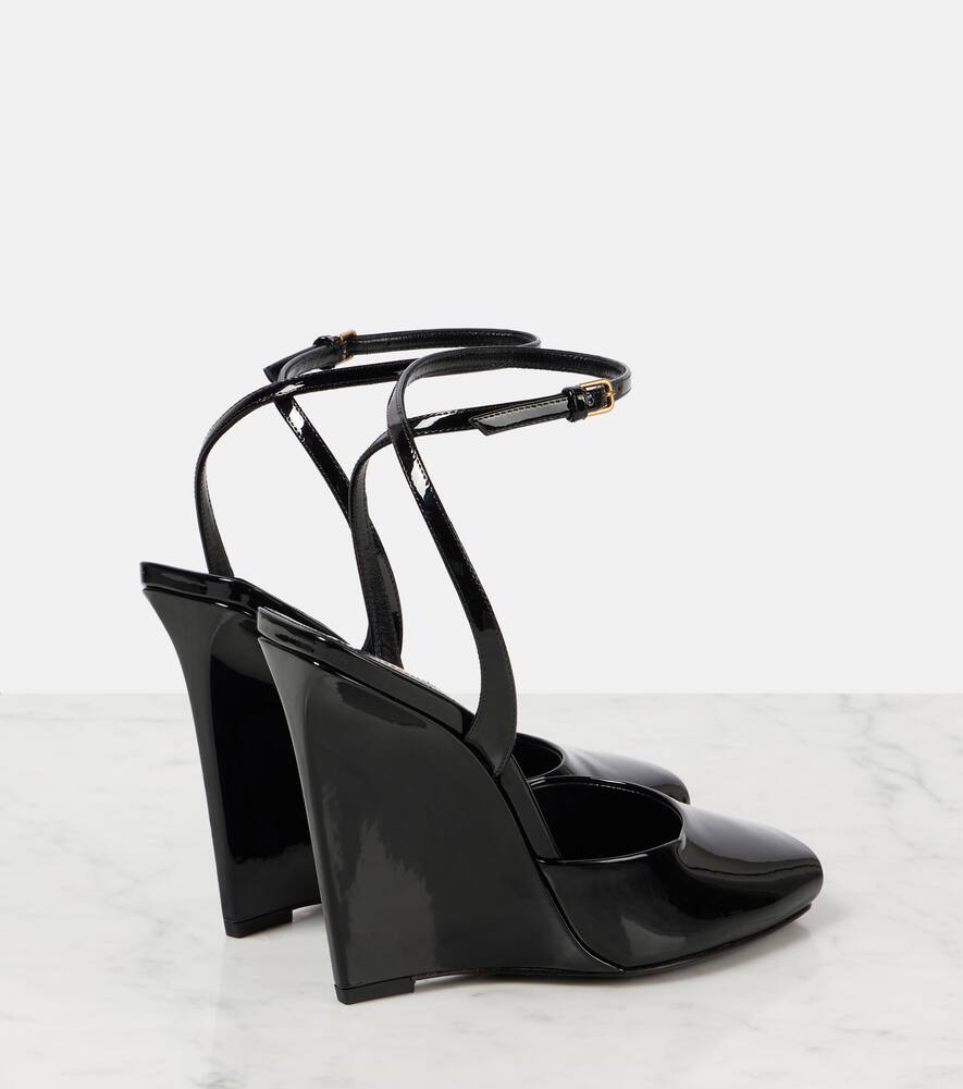 Upper: leather. Lining: leather. Sole: leather insole and sole. Toe shape: square open toe. Made in Italy. Includes: shoe box, dust bags. Designer color name: Nero. Closure: buckle-fastening ankle strap. Hardware color: gold. Shop the latest Saint Laurent High-Heel Sandals for women now.