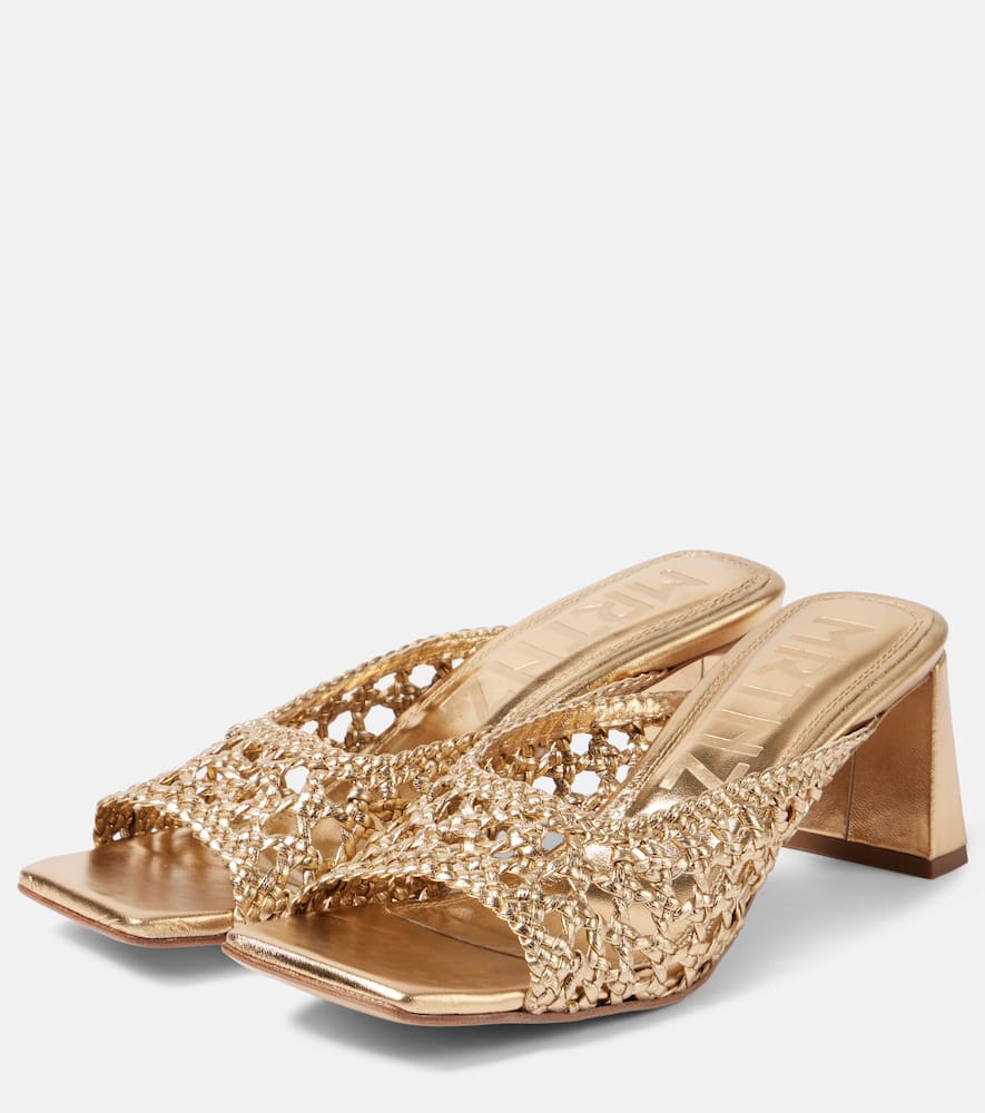 Upper: leather. Lining: leather. Sole: leather insole and sole. Toe shape: square open toe. Made in Spain. Includes: shoe box, dust bag. Designer color name: Gold. Shop the latest Souliers Martinez Mid-Heel Sandals for women now.