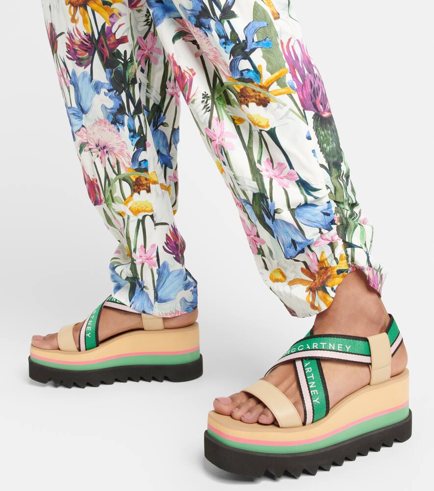 Toe shape: round open toe. Upper: fabric. Sole: fabric insole, rubber sole. Closure: elasticated strap. Lining: fabric. Designer color name: Green/Pink. Comes with a box. Made in Italy. Comes with dust bag. Shop the latest Stella McCartney Mid-Heel Sandals for women now.