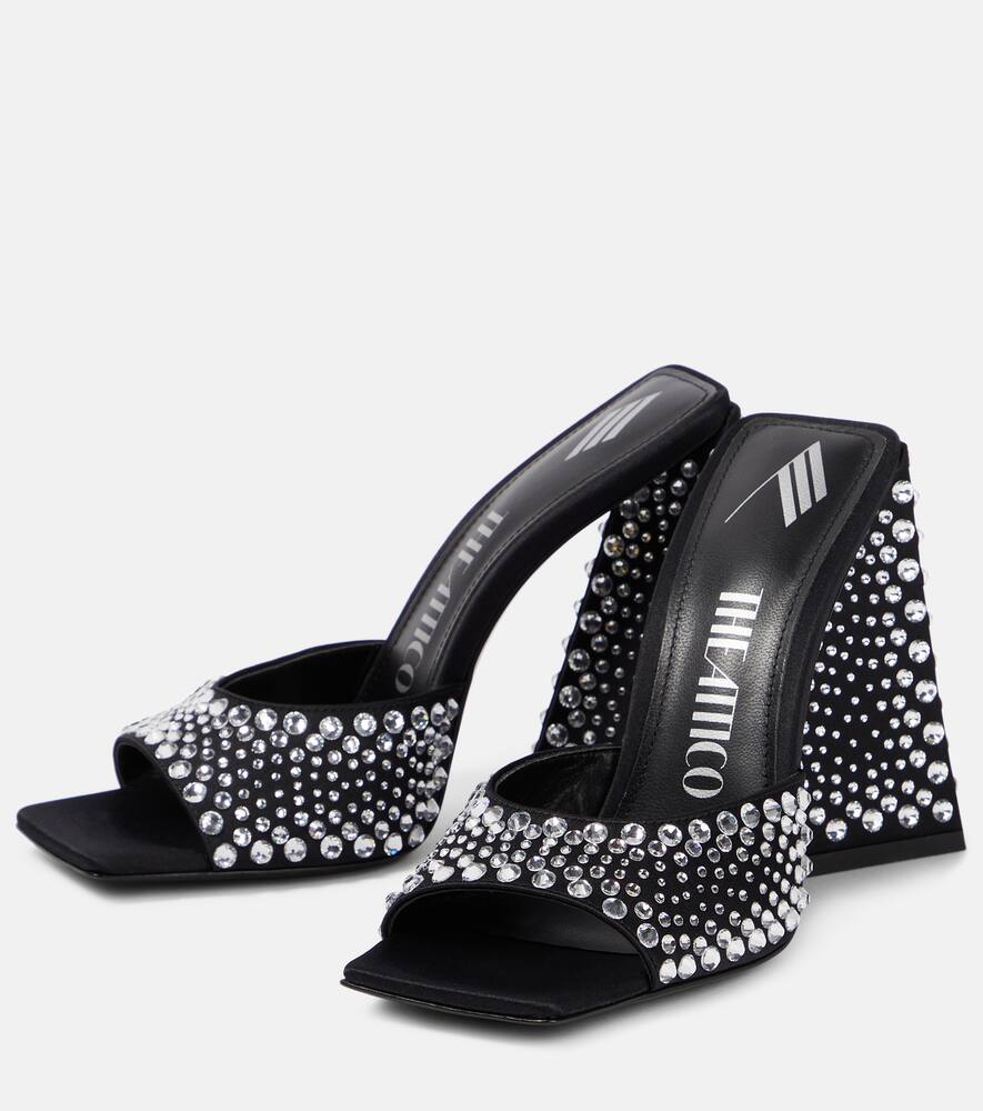 Upper: fabric. Lining: leather. Sole: leather insole and sole. Toe shape: square open toe. Made in Italy. Includes: dust bags. Designer color name: Black/Crystal. Comes with a box. Shop the latest The Attico High-Heel Sandals for women now.