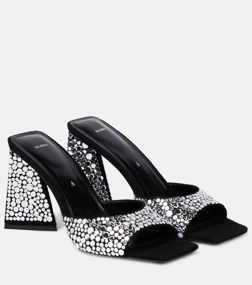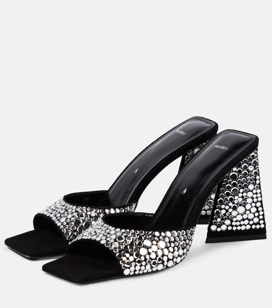 Upper: fabric, glass. Lining: leather. Sole: leather insole and sole. Toe shape: square open toe. Made in Italy. Includes: shoe box. Designer color name: Black/Silver. Shop the latest The Attico High-Heel Sandals for women now.