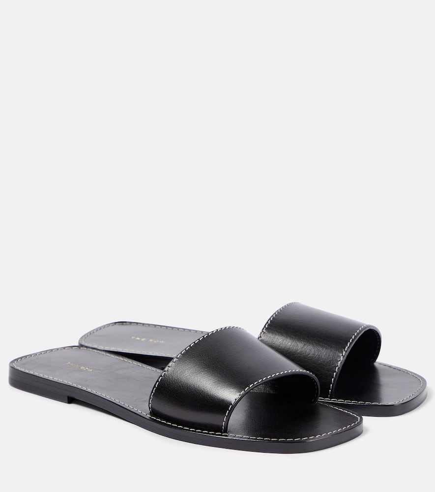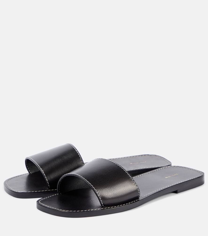 Upper: leather. Lining: leather. Sole: rubber insole and sole. Toe shape: square open toe. Made in Italy. Includes: shoe box, dust bag. Designer color name: Black. Shop the latest The Row Slides for women now.