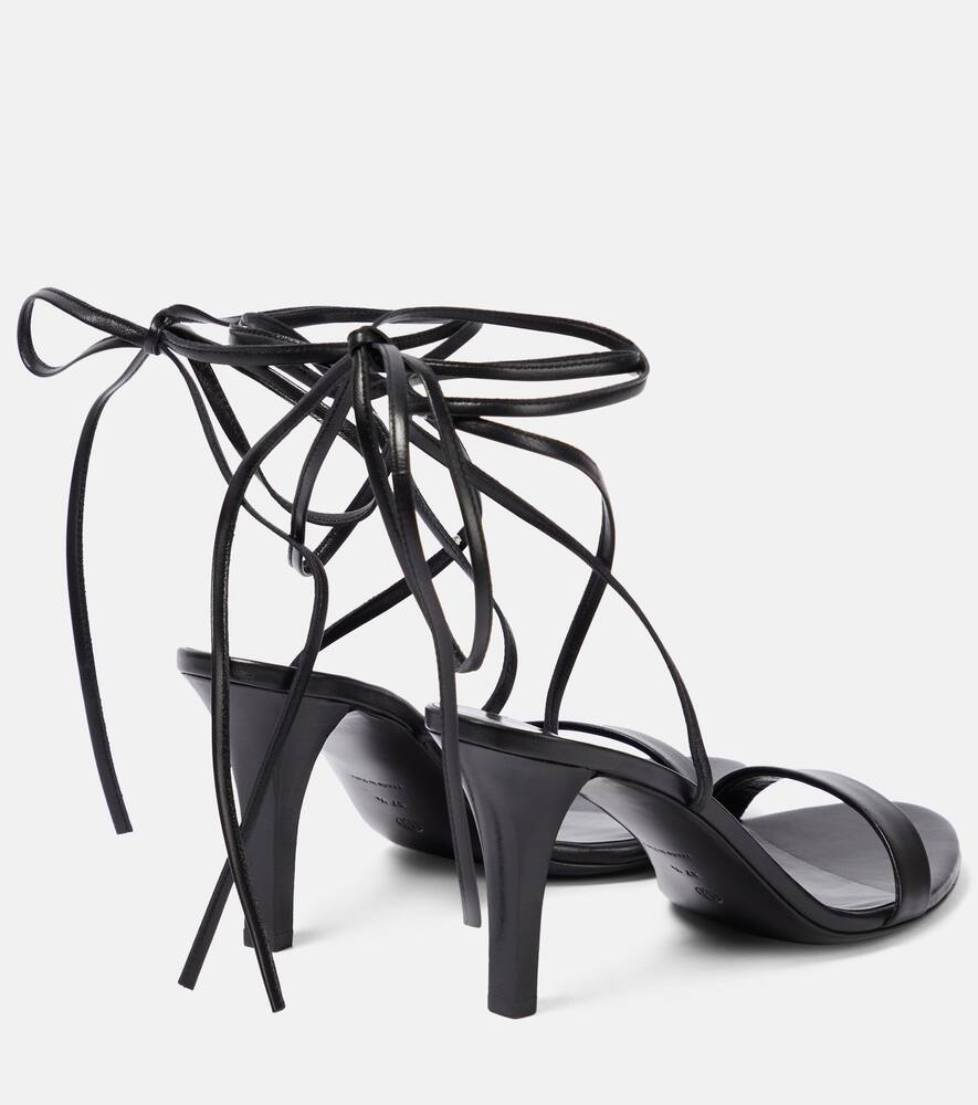 Toe shape: round open toe. Lining: leather. Sole: leather insole, rubber sole. Closure: ankle strap. Upper: leather. Designer color name: Black. Comes with a box, Comes with dust bag. Made in Italy. Shop the latest The Row Mid-Heel Sandals for women now.