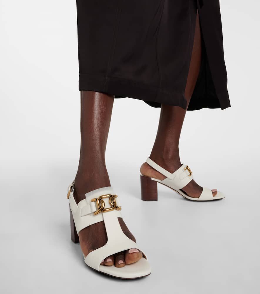 Upper: calf leather. Lining: leather. Sole: leather insole and sole. Toe shape: square open toe. Made in Italy. Includes: shoe box, dust bag. Designer color name: Yogurt. Closure: buckle fastening. Shop the latest Tod's High-Heel Sandals for women now.