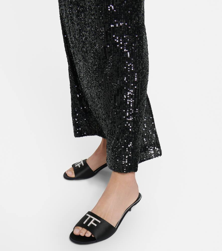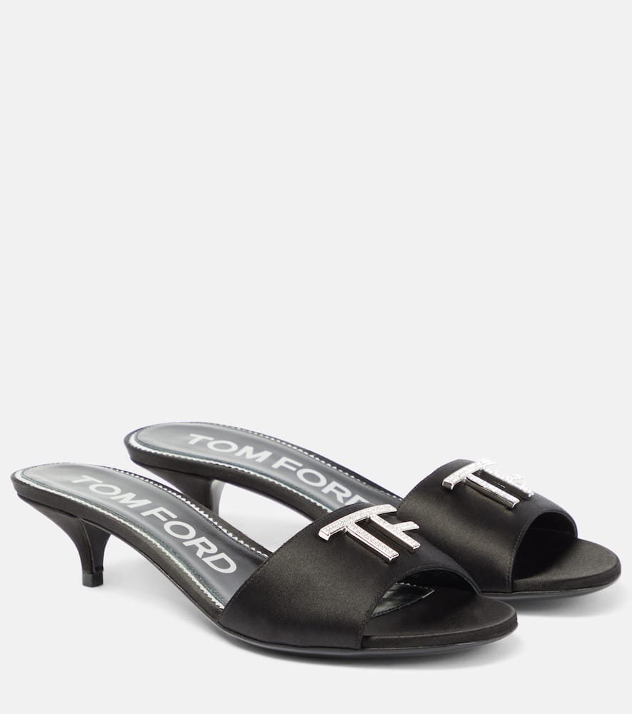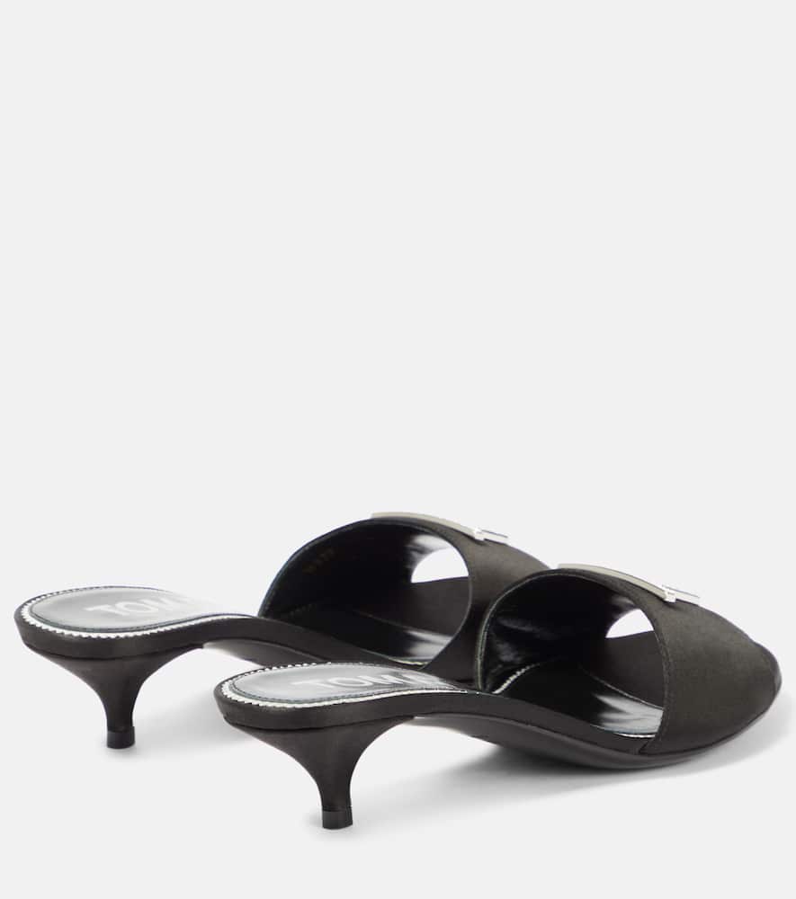 Toe shape: round open toe. Lining: leather. Upper: satin. Sole: leather insole and sole. Comes with dust bags, Comes with a box. Designer color name: Black. Made in Italy. Shop the latest Tom Ford Mid-Heel Sandals for women now.