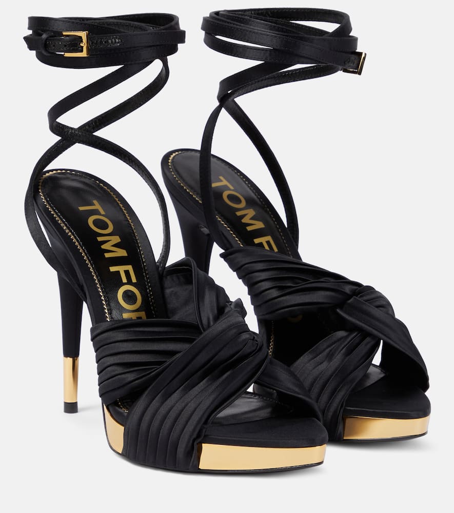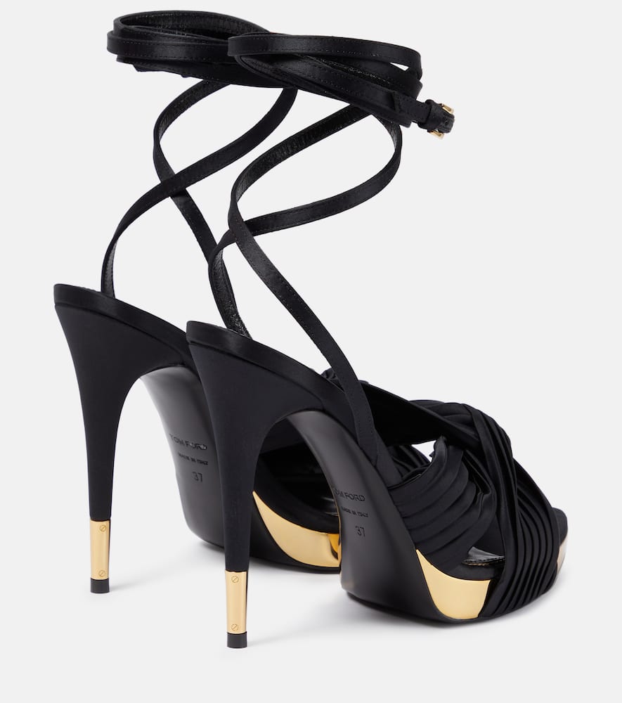 Lining: leather. Toe shape: pointed open toe. Sole: leather insole and sole. Closure: ankle strap. Comes with extra heel tips. Designer color name: Black. Made in Italy. Comes with dust bags. Upper: fabric. Comes with a box. Shop the latest Tom Ford High-Heel Sandals for women now.