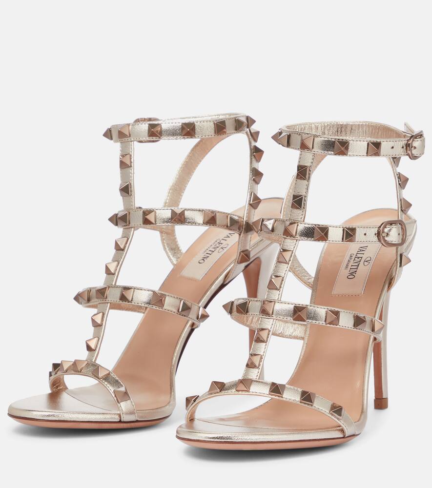 Upper: leather. Lining: leather. Sole: leather insole and sole. Toe shape: round open toe. Made in Italy. Includes: shoe box, dust bags. Designer color name: Skin. Closure: buckle-fastening ankle strap. Hardware color: rose gold. Shop the latest Valentino Garavani High-Heel Sandals for women now.