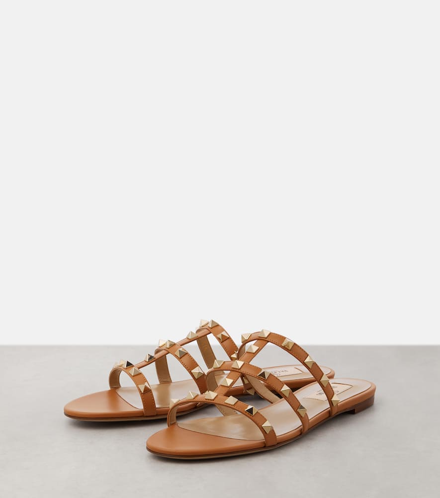 Upper: calf leather. Lining: leather. Sole: leather insole and sole. Toe shape: round open toe. Made in Italy. Includes: shoe box, dust bag. Designer color name: Almond Beige. Hardware color: gold. Shop the latest Valentino Garavani Slides for women now.