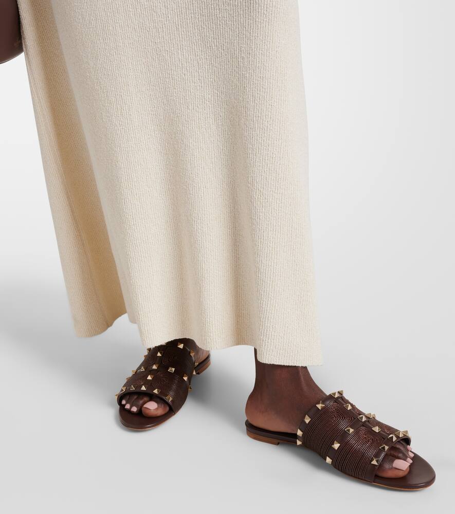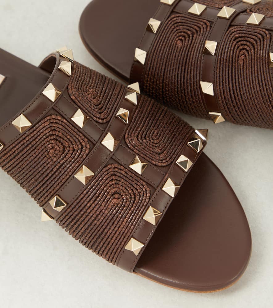Valentino Garavani Rockstud raffia-trimmed leather sandals