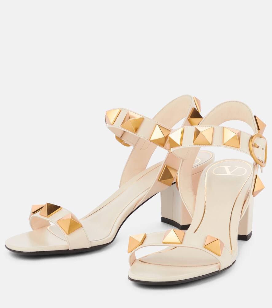 Upper: calf leather. Lining: leather. Sole: leather insole and sole. Toe shape: square open toe. Made in Italy. Includes: shoe box. Designer color name: Light Ivory. Closure: buckle-fastening ankle strap. Hardware color: gold. Shop the latest Valentino Garavani Mid-Heel Sandals for women now.