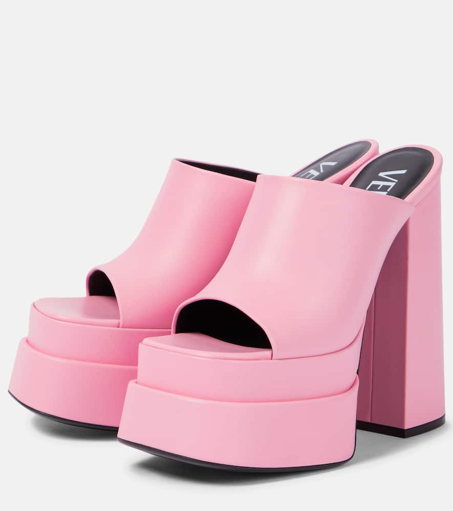 Lining: leather. Upper: calf leather. Sole: leather insole and sole. Toe shape: square open toe. Made in Italy. Designer color name: Candy-Oro Versace. Shop the latest Versace High-Heel Sandals for women now.