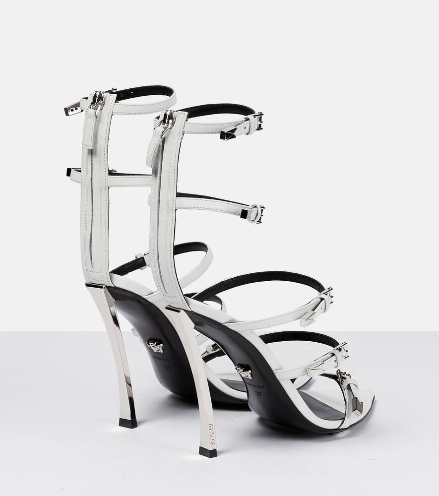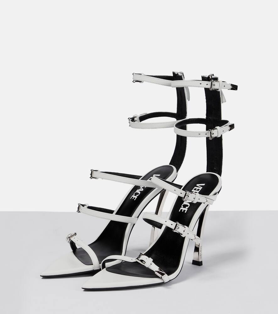 Lining: leather. Toe shape: pointed open toe. Sole: leather insole and sole. Closure: zipped back. Upper: leather. Designer color name: Optical White-Palladium. Comes with a box. Made in Italy. Comes with dust bag. Shop the latest Versace High-Heel Sandals for women now.