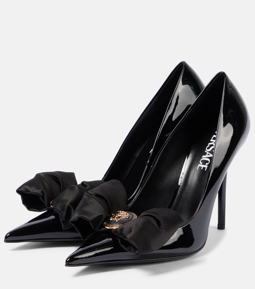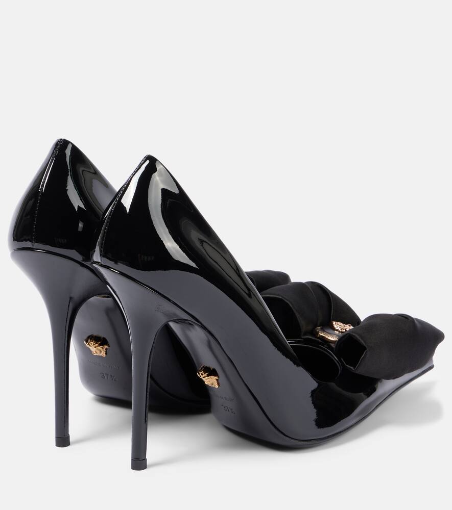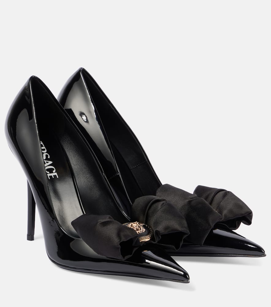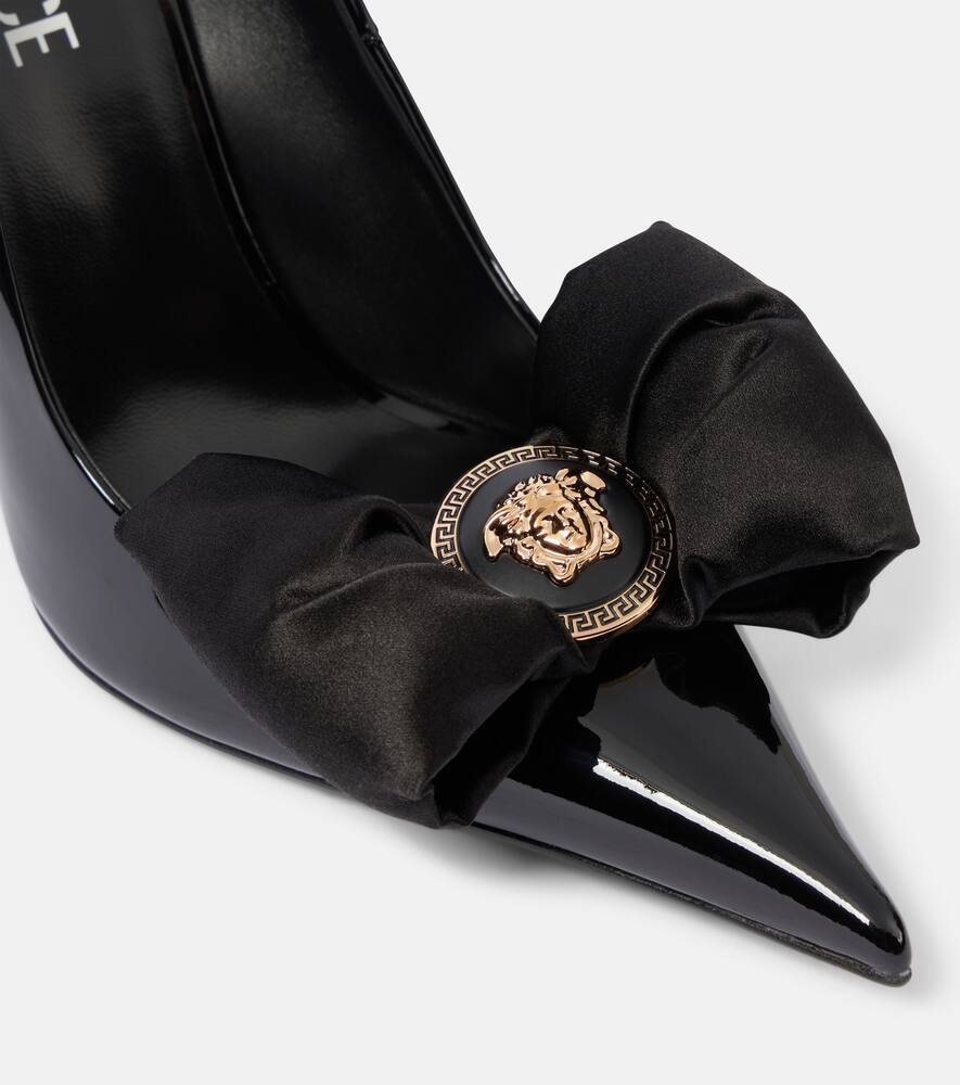 Upper: leather. Lining: leather. Sole: leather insole and sole. Toe shape: pointed toe. Made in Italy. Includes: dust bags, shoe box. Designer color name: Black-Versace Gold. Shop the latest Versace High-Heel Pumps for women now.