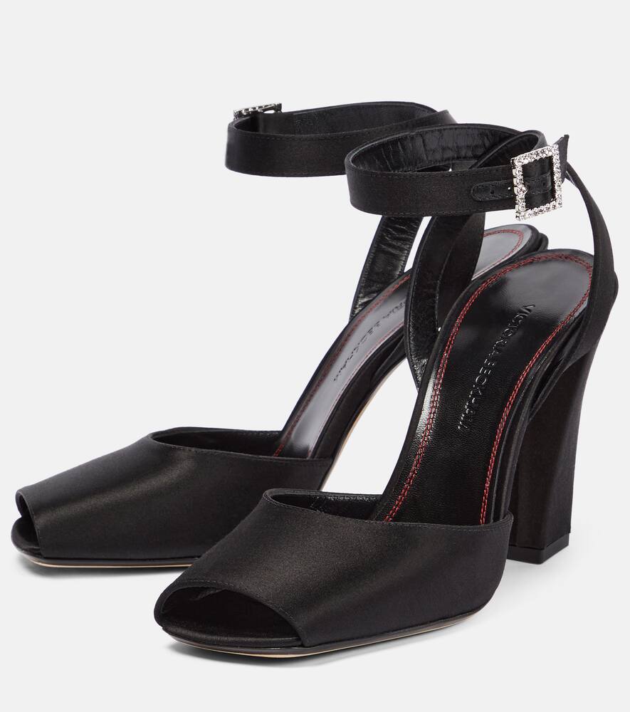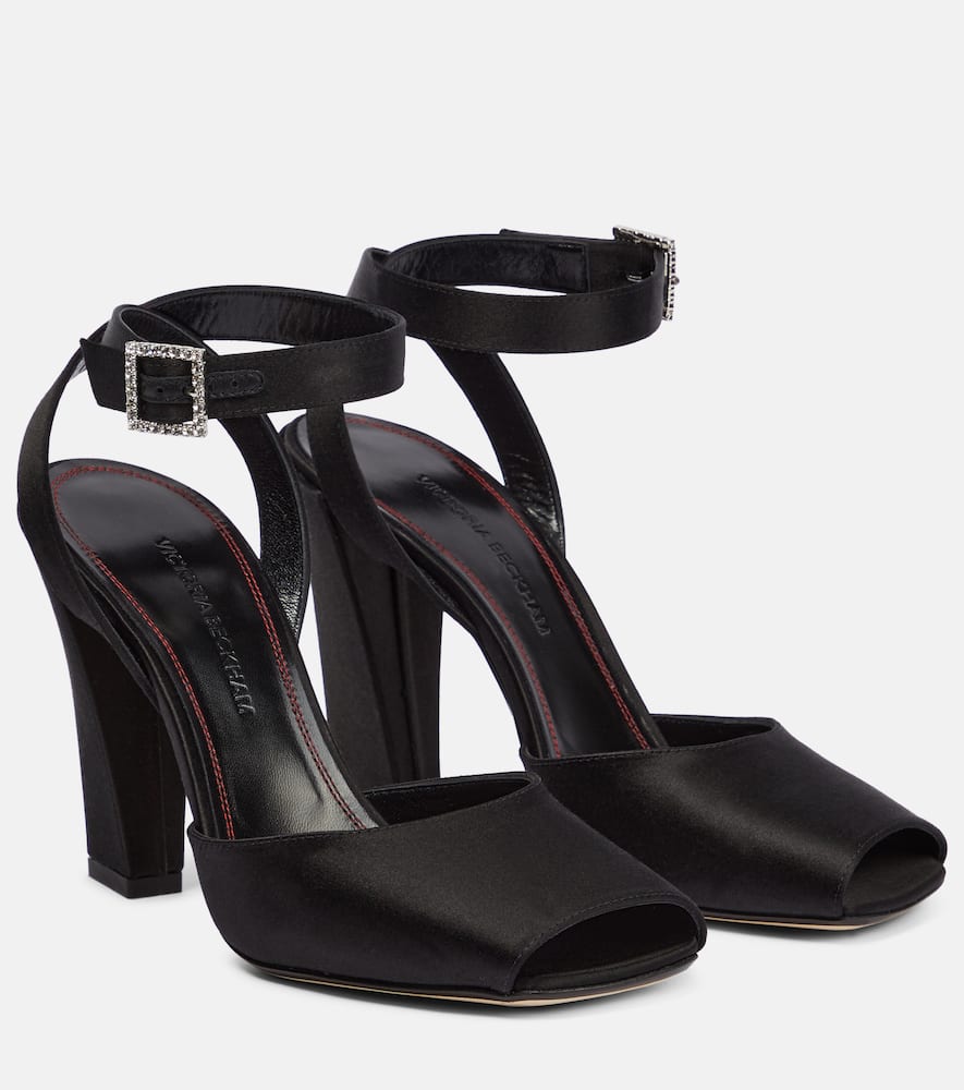 Upper: fabric. Sole: leather insole and sole. Toe shape: square open toe. Lining: fabric. Comes with a box. Designer color name: Black. Closure: buckle-fastening ankle strap. Made in Italy. Comes with dust bag. Shop the latest Victoria Beckham High-Heel Sandals for women now.