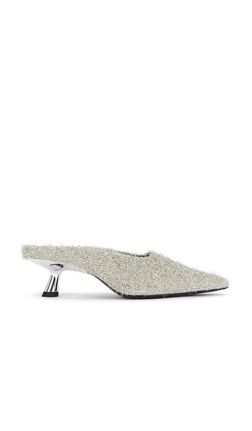 SIMONMILLER Gala Tinsel Pointed Mule in Metallic Silver