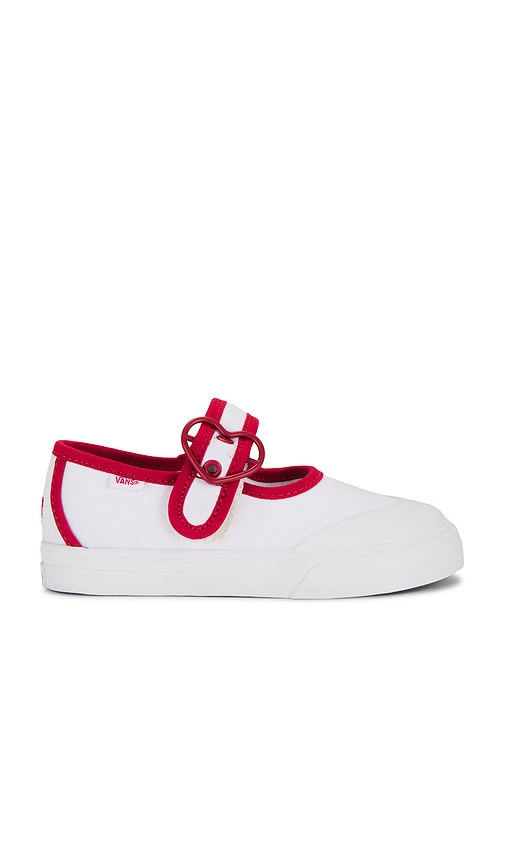 Canvas upper with rubber waffle sole. Made in China. Adjustable velcro strap across forefoot with faux buckle. Rubber toe cap. Signature Vans license plate. VANX-GZ4. VN000CRYBJT1. Vans, your everyday shoes with that fun spin. Keeping everything comfortable and colorful, Vans gives a variety of choices for walking those miles Color: White & Red. Shop White & Red Shoes for women and the latest Vans shoes now.