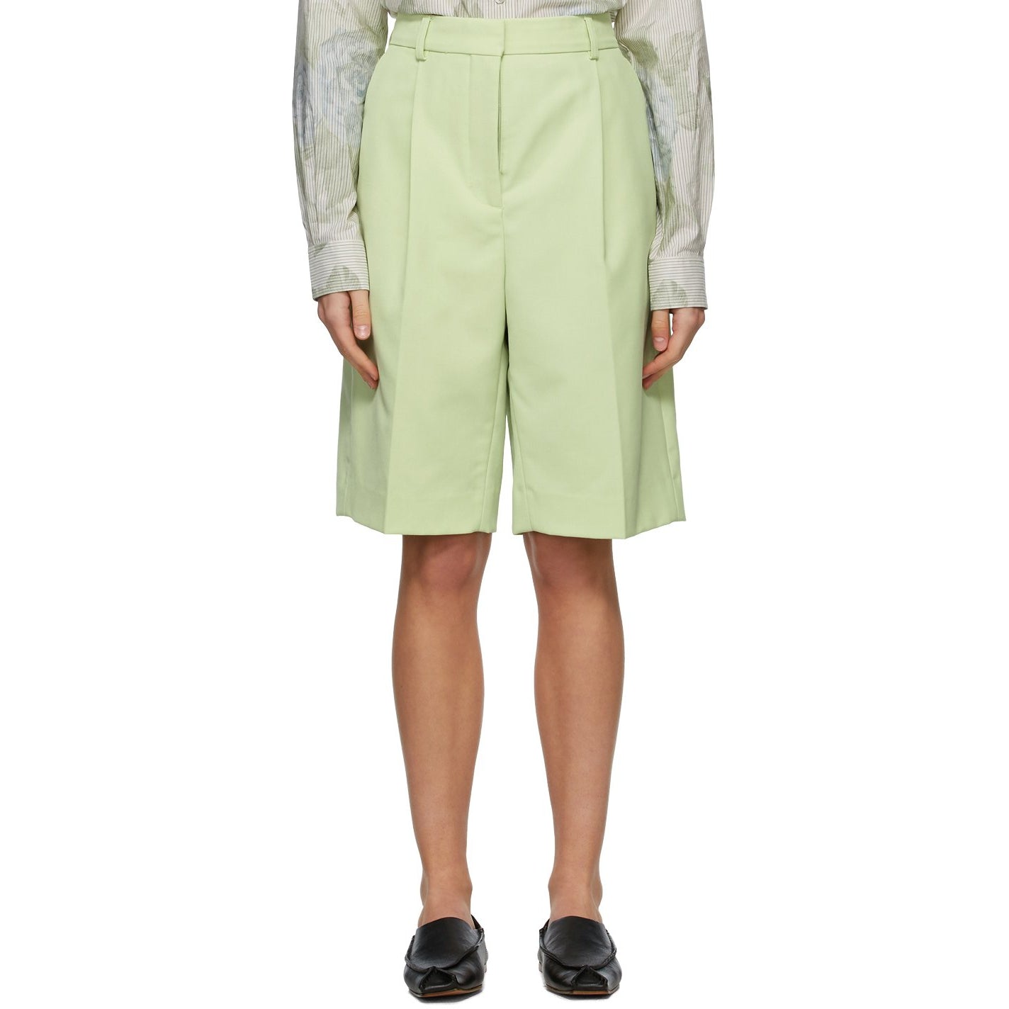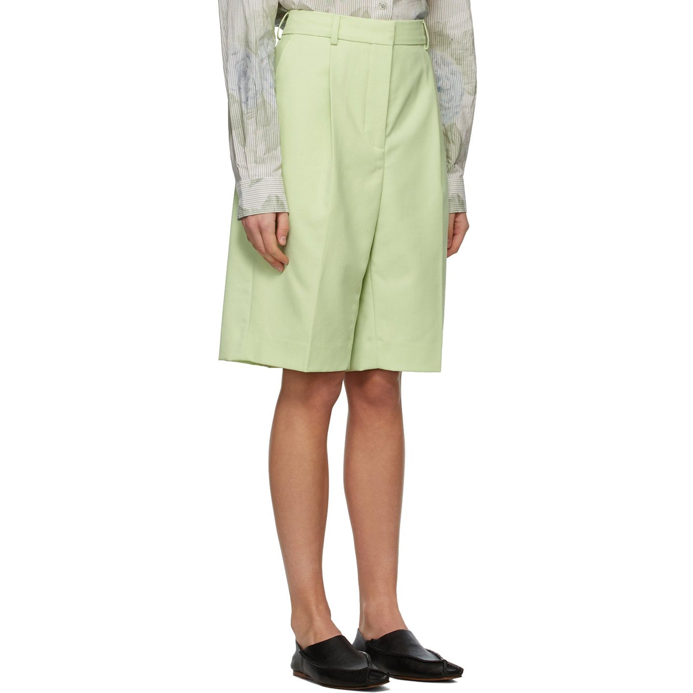 Acne Studios Green Wool Knee-Length Shorts - Acné Studios Court de longueur genou en laine verte - 여드름 스튜디오 녹색 양모 무릎 길이 반바지