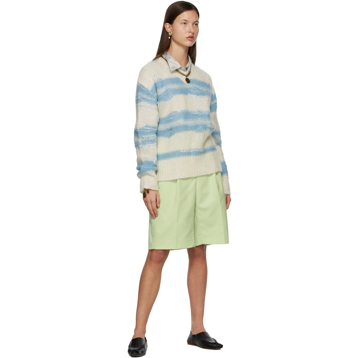 Acne Studios Green Wool Knee-Length Shorts