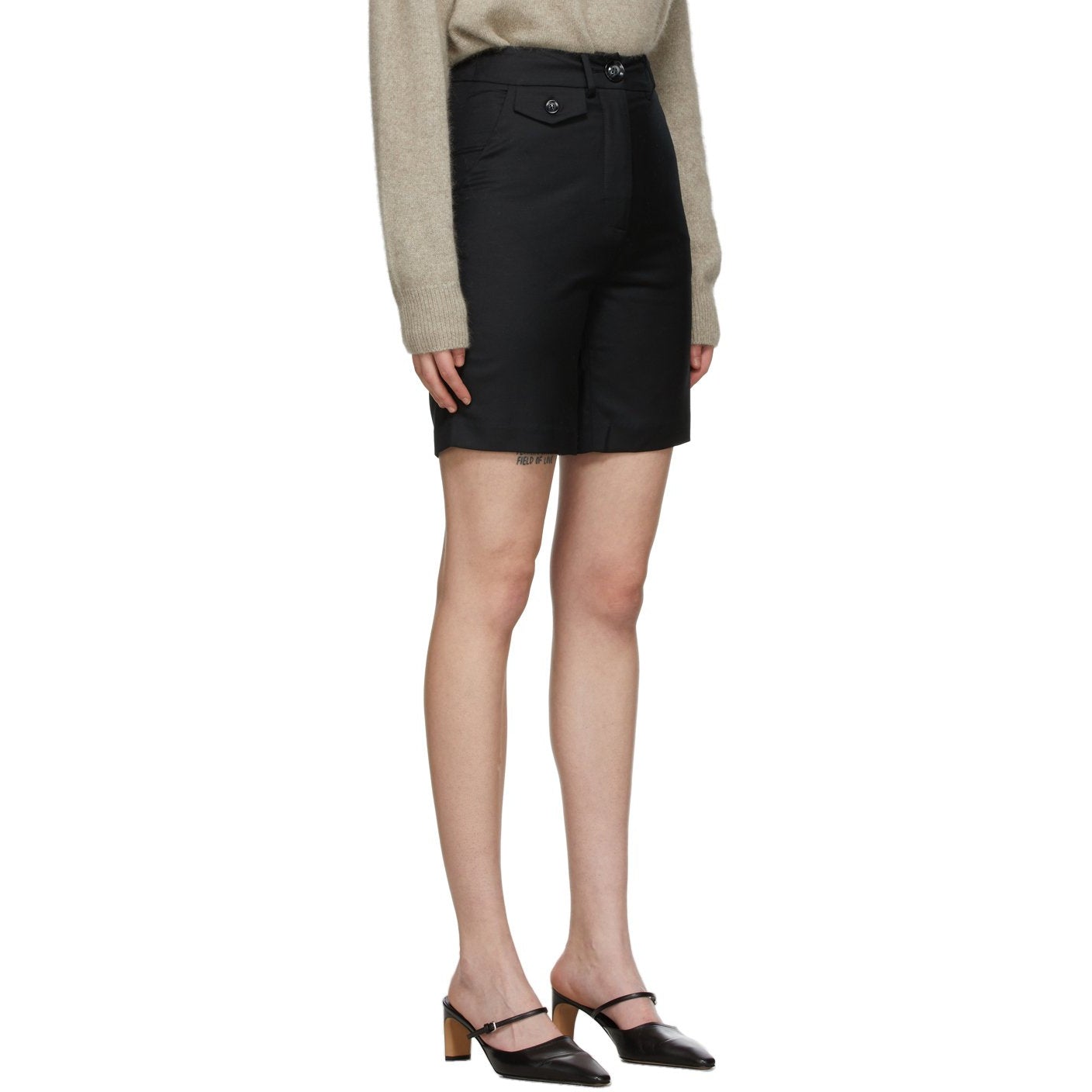 Wool twill shorts in black. Mid-rise. Three-pocket styling. Belt loops at waistband. Zip-fly. Tonal hardware. Supplier color: Black Body: 100% wool. Lining: 100% polyester. Brand: Anna Quan