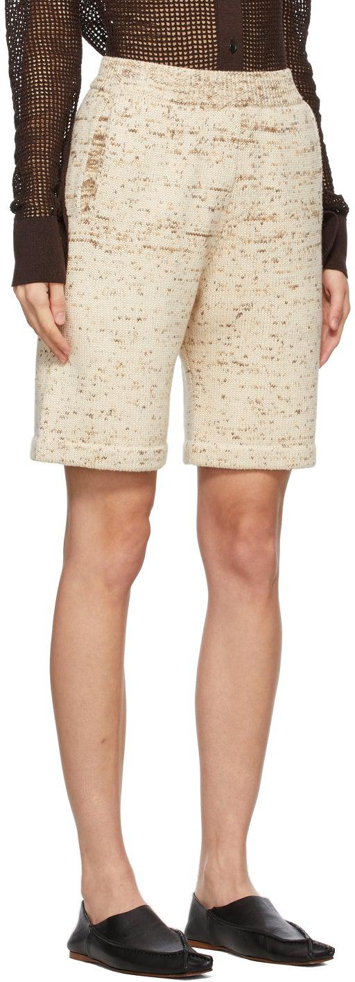 Hand-dyed knit cotton shorts in beige and tones of brown. Mid-rise. Two-pocket styling. Concealed drawstring at waistband. Supplier color: Mix brown 100% cotton. Brand: AURALEE