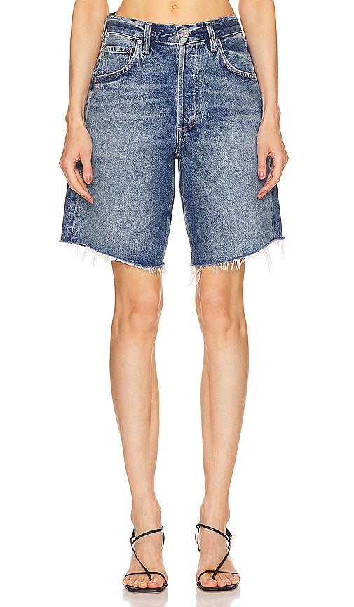 Citizens of Humanity Ayla Short in Blue. - size 23 (also in 26, 27, 28, 29, 30, 33, 34) Citizens of Humanity Ayla Short in Blue. - size 23 (also in 26, 27, 28, 29, 30, 33, 34) 100% regenerative cotton. Made in Turkey. Machine wash. Button fly. 5-pocket design. Heavy whiskering and fading detail. Frayed raw-cut hem. Shorts measure approx 19 in length. CITI-WF102. 2118B-3017. Established in 2003, Citizens of Humanity is renowned in the fashion industry for its pioneering approach to premium denim. With an uncompromising focus on fit, fabric and wash. Citizens of Humanity jeans are the ultimate luxury denim. Shop the latest in fashion from Citizens of Humanity