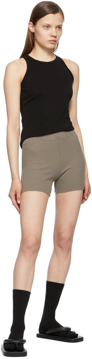 Stretch rib knit cotton shorts in grey. High-rise. Elasticized waistband. Supplier color: Ash 88% cotton, 12% spandex. Brand: COTTON CITIZEN