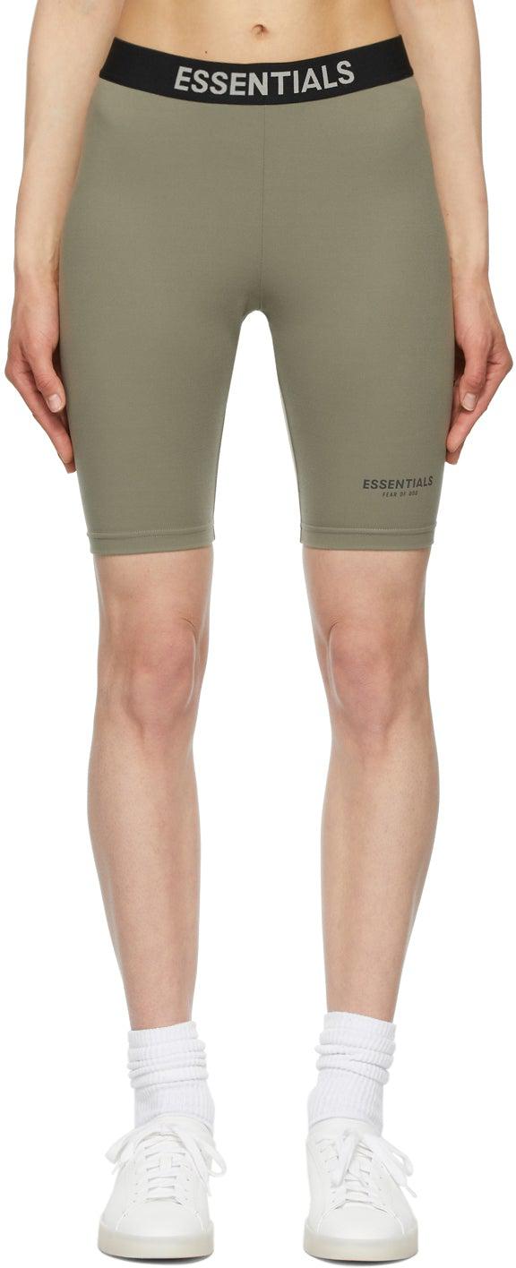 Stretch nylon jersey shorts in grey. High-rise. Tonal jacquard knit logo at black elasticized waistband. Logo printed in black at cuff. Please note that this item may not be shipped within the EU. Supplier color: Charcoal 69% nylon, 31% spandex. Brand: Essentials
