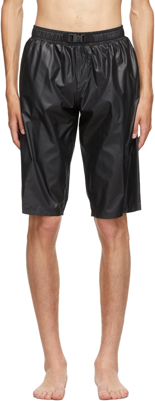 Coated taffeta shorts in black. Mid-rise. Three-pocket styling. Elasticized webbing belt with cinch fastening at waistband. Fully lined. Supplier color: Black Body: 100% polyester. Lining: 91% cotton, 9% polyamide. Brand: Fendi