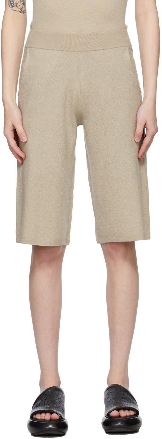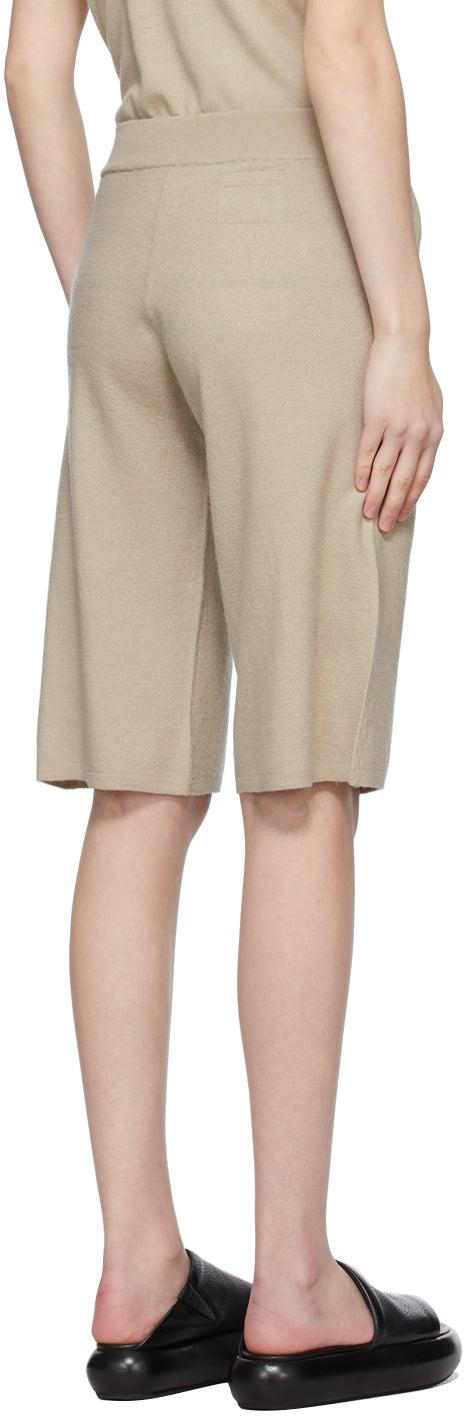 Fully fashioned knit cashmere shorts in beige. Mid-rise. Rib knit waistband. Supplier color: Dark chal 100% cashmere. Brand: Frenckenberger