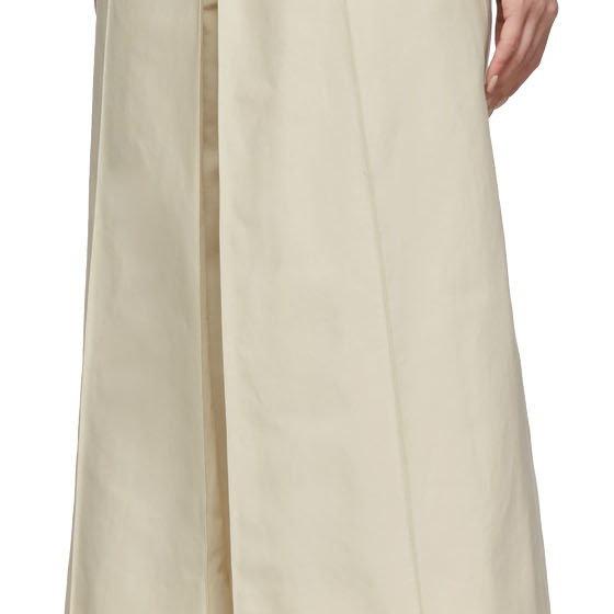 Culotte-style cotton and linen-blend canvas shorts in off-white. High-rise. Two-pocket styling. Belt loops at waistband. Pleats and pinched seams at front and back. Button fastening and zip closure at outseam. Tonal hardware. Supplier color: Almond milk Body: 70% cotton, 30% linen. Lining: 100% cotton. Brand: Lemaire