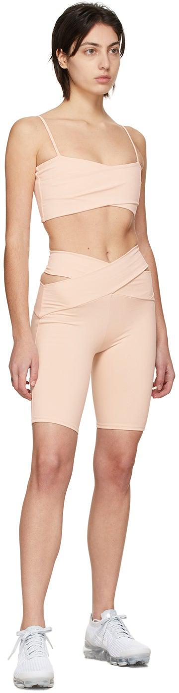 Stretch Supplex® jersey shorts in pink. High-rise. Criss-crossing construction at waistband. Supplier color: Creme 90% supplex, 10% lycra. Brand: Live the Process