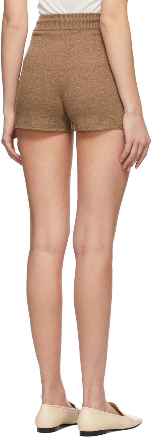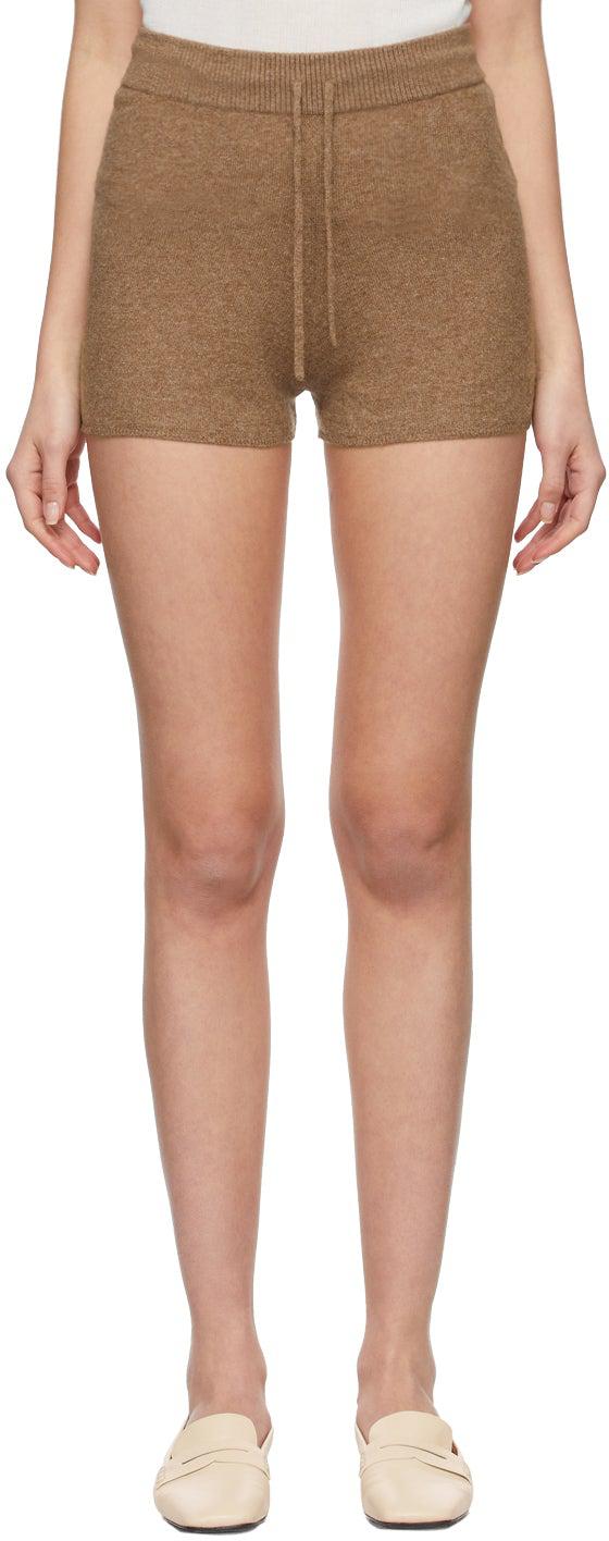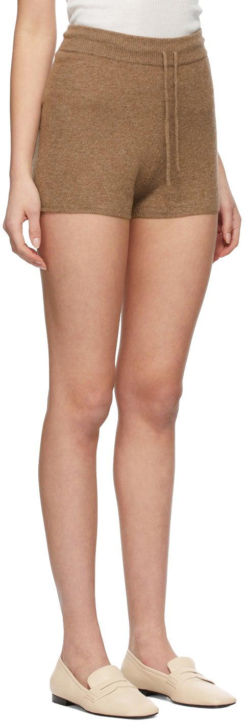 Brushed knit cashmere shorts in brown mélange. High-rise. Drawstring at elasticized waistband. Supplier color: Mocha mélange 100% cashmere. Brand: Loulou Studio