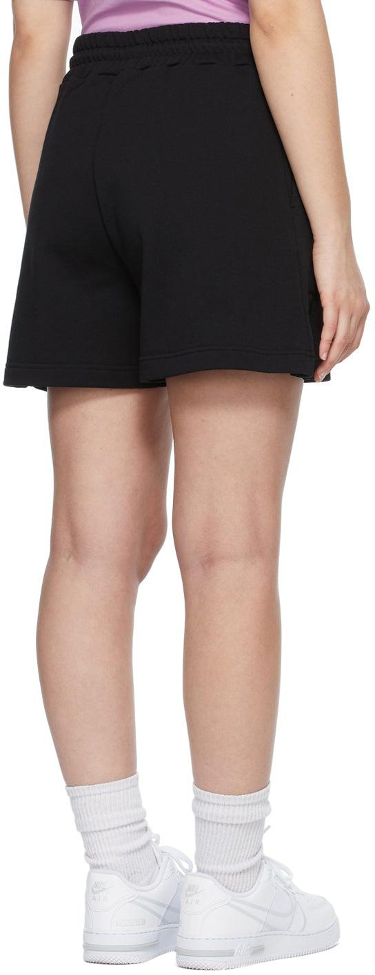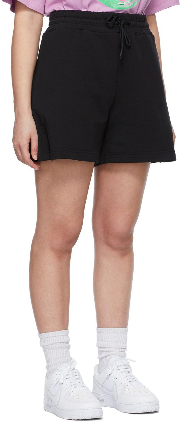 French terry shorts in black. Mid-rise. Two-pocket styling. Drawstring at waistband. Printed logo in white at leg. Vented outseams. Supplier color: Black 100% cotton. Brand: MSGM