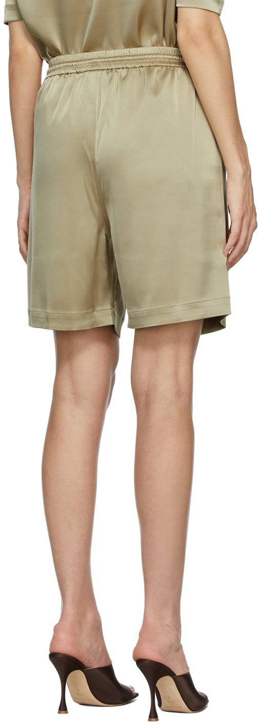 Satin shorts in khaki. High-rise. Two-pocket styling. Drawstring in beige at elasticized waistband. Mock-fly. Supplier color: Sage 78% triacetate, 22% polyester. Brand: Nanushka